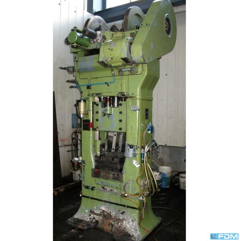 nominal force:160 t stroke:140 mm no. of strokes:85 /min distance between columns:400 mm distance table/ram, max. stroke up, adjustment up:500 mm table surface area:400 x 450 mm table height over floor:800 mm Allowed max. force:230 t ram surface:400 x 320 mm spindle diameter:125 mm power requirement:7,35 kW weight:5,0 t dimensions (WxDxH):1,7 x 1,2 x 2,9 m