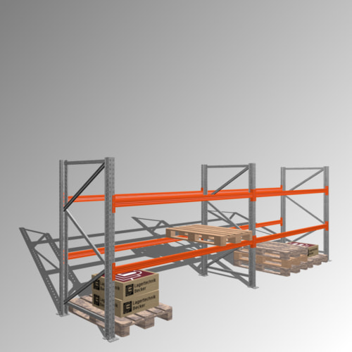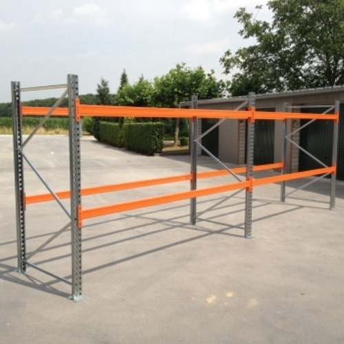 Support de rayonnage à palettes SLP Hauteur env. 4 620 mm / Profondeur 1 100 mm SL15, occasion Propriétés: - Du stock Krefeld - veuillez vous renseigner sur l’expédition - Hauteur du support/hauteur du cadre : 4 620 mm - Profondeur du support/profondeur du cadre : 1 100 mm - Largeur du profil : 100 mm - Occasion : très bon état Debout:: - Les cadres sont constitués de deux profilés Omega avec leurs connecteurs, pieds de poteau et matériaux de fixation correspondants - Les entretoises horizontales et diagonales orange - La perforation du profilé Omega a une distance de 70 mm pour le maintien des fermes - Surface thermolaquée, bleu gentiane RAL 5010 Les supports sont déjà pré-assemblés. Contenu de la livraison : - Support 4 620 x 1 100 mm : 1 pièce Taille: Hauteur du support : 4 620 mm Profondeur du support : 1 100 mm Pas : 70 mm ...