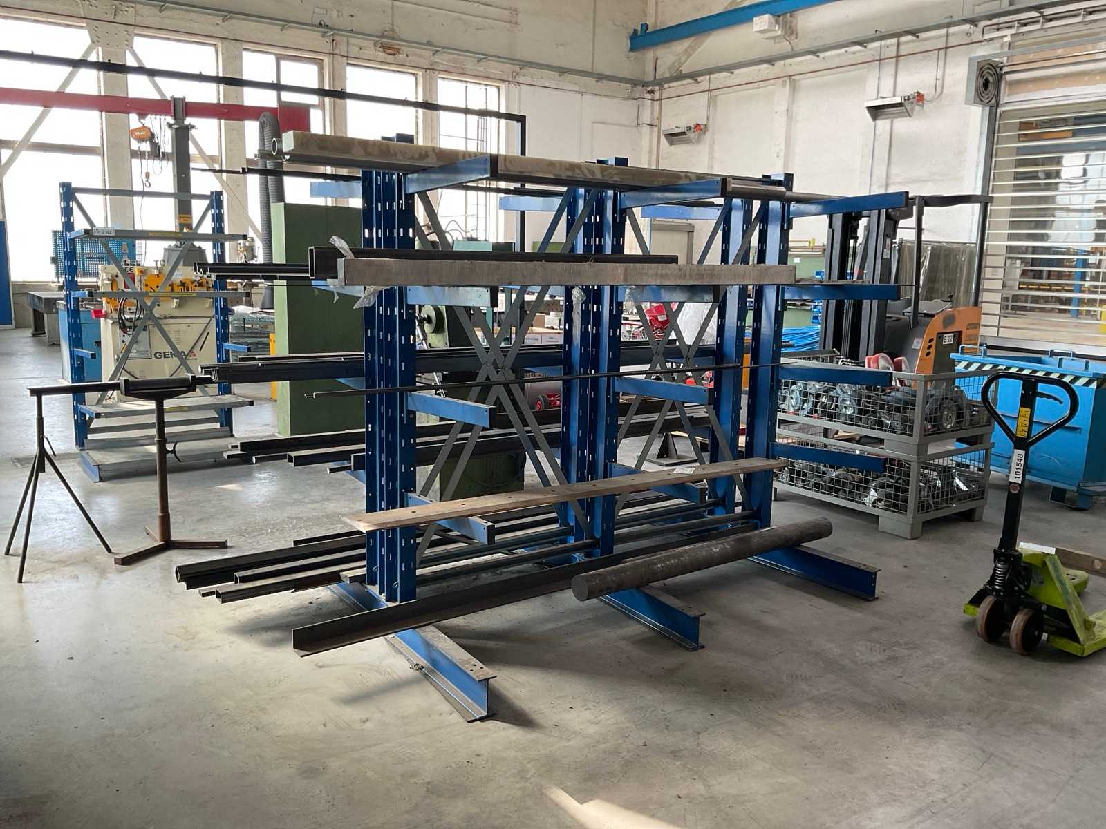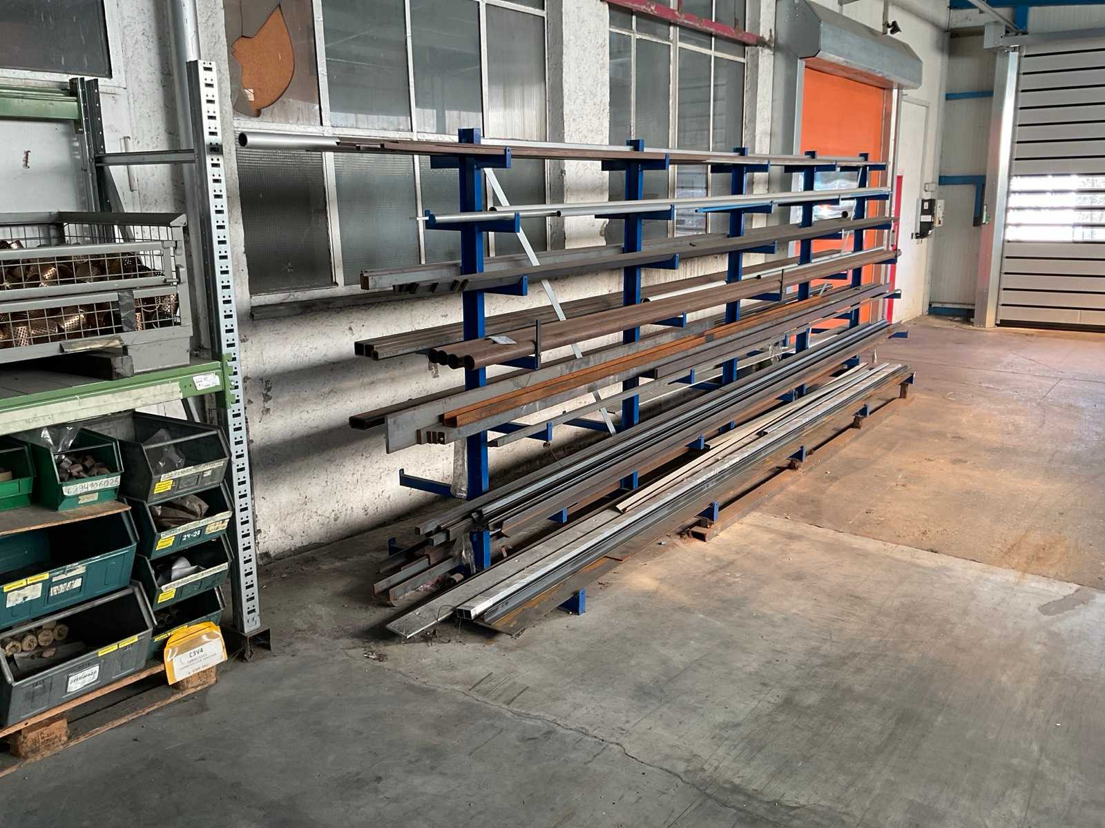 Rack à porte-à-faux composé de : 4 montants verticals, hauteur de support d’environ 2700 mm, longueur de bras d’environ 800 mm, 26 bras porte-à-faux, sans contenu Auction-ID: A7-45254-404