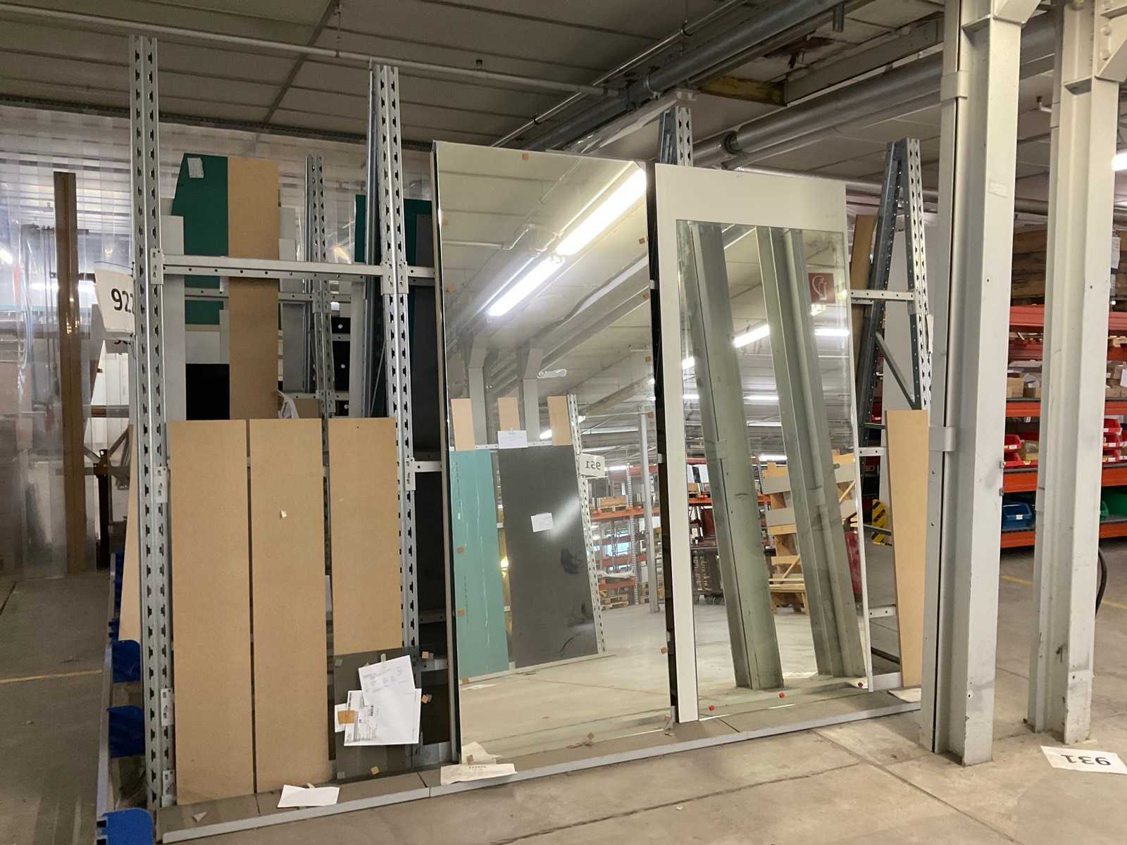 Étagère verticale composée de : 4 supports d’environ 630x1920 mm, angle d’environ 6 degrés, 12 fermes d’environ 1340 mm, 6 fermes d’environ 835 mm, 4 compartiments de soutien d’environ 275x1430 mm, 2 compartiments de soutien d’environ 275x935 mm, avec contenu Auction-ID: A7-45254-470