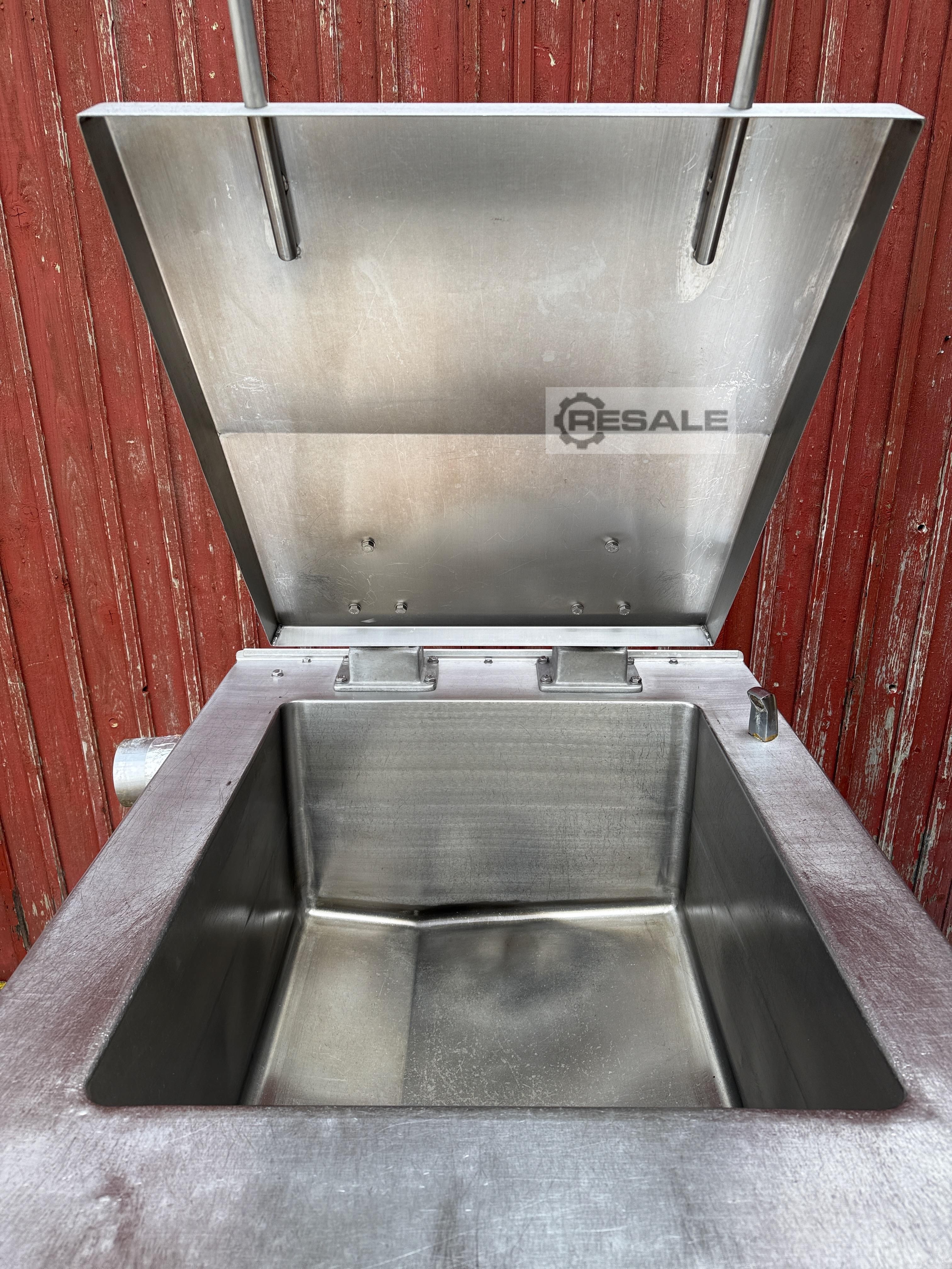 Bouilloire Auriol M500VBEX Numéro de série : 3430 Inox, capacité de 500l, gaine de vapeur, émulsifiant avec moteur monté en bas, diamètre de l’émulsifiant 120mm, vitesse variable, inclinaison automatique à décharge, sur cellules de charge, 3Ph