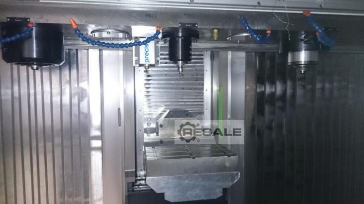 4 fraiseuses à grande vitesse pour trains à broche, ANGER, HCP 5/10, 2005 Contrôle : NUM, très peu d’heures d’exploitation. Méthodes : X-300, Y-1130, Z-300, - 4 axes +/- 180 degrés 4 broches haute fréquence : Précis 60000 / 160000 / 18000 / 16000 tr/min, tr/min Porte-outil : Manchettes selon la broche Convoyeur à puces, ATC, unité de refroidissement, système de mesure externe Renishaw Consommation d’énergie 41 kW
