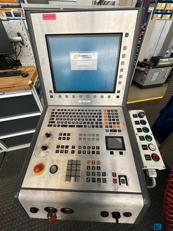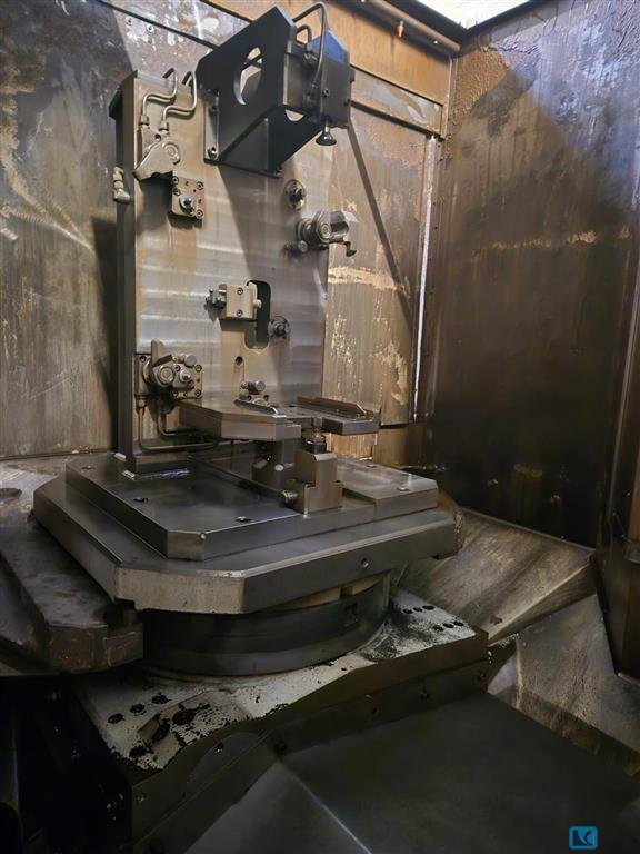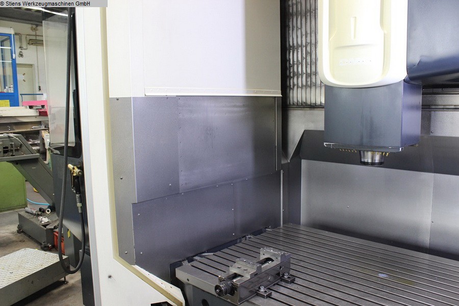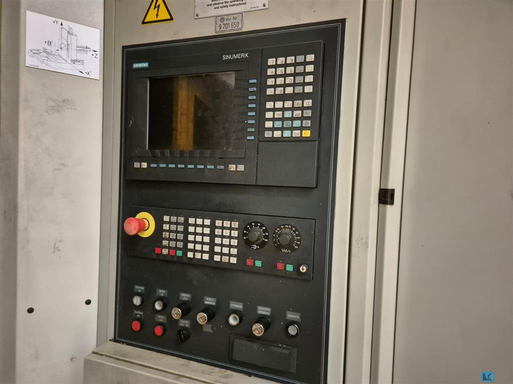 spindle speed::max. 12000 tool taper:HSK 80 .b-axis:360 x 0,001 °worktool support (A-axis):+40 / -95 °weight of the machine ca.:25 500 Kgs.x-travel:800 mmy-travel:700 mmz-travel:630 mmdimensions of the machine ca.:6200 x 3000 x 3200 mmpallet size::500 x 500 mmno. of tools in the magazine:61 Nos.Weight approx.:23,5 tHorizontal Machining Center with CNC Control System SIEMENS 840 C in well maintained condition.Single spindle