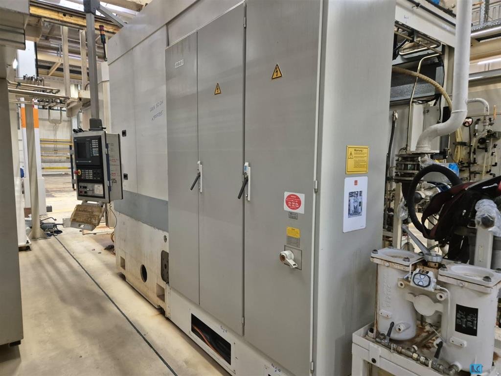 Centre de tournage et de perçage CNC Lealde Valvecenter-5V Année 1997 conçus spécifiquement pour les corps de soupapes (vannes pétrole et gaz, vannes de pipeline, etc.). Il effectue le tournage, le perçage et l’usinage des composants de vannes dans une seule installation.  Principalement utilisé dans les usines de vannes et les ateliers d’usinage lourd. Oscillation maximale sur les guides longitudinaux : 1000 mm Oscillation maximale sur les guides croisés : 700 mm Nez principal : DIN 55021 – Forme B Diamètre du trou traversant de la broche : 139 mm Diamètre du roulement de broche avant : 200 mm Vitesse maximale de la broche : 1000 tr/min Couple maximal de la broche : 3434 Nm Traversée rapide par axe • Axe W : 20 000 mm/min • Axes X / X1 / X2 : 17 400 mm/min • Axe Z : 15 000 mm/min Voyages Glissière de rotation – course transversa ...