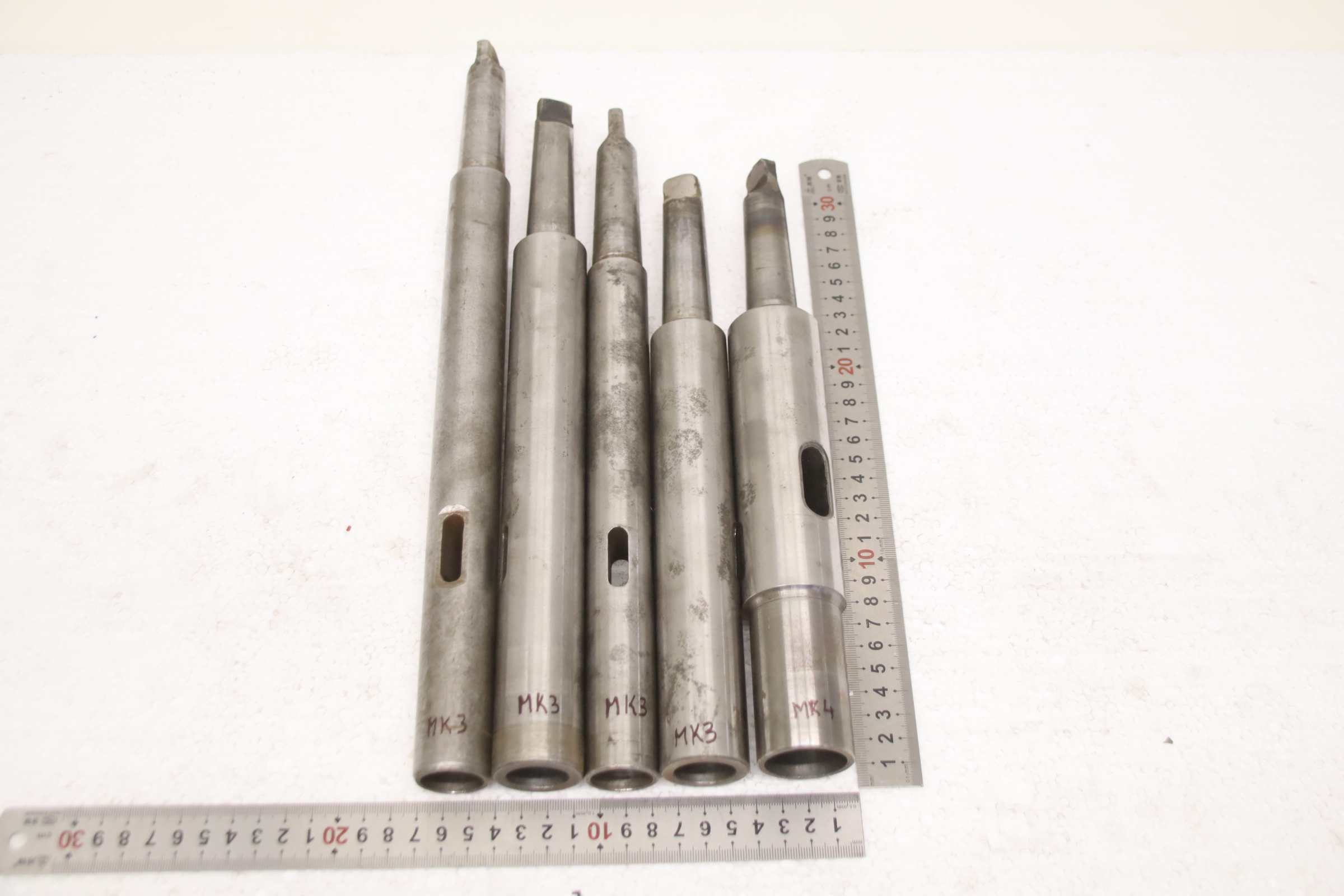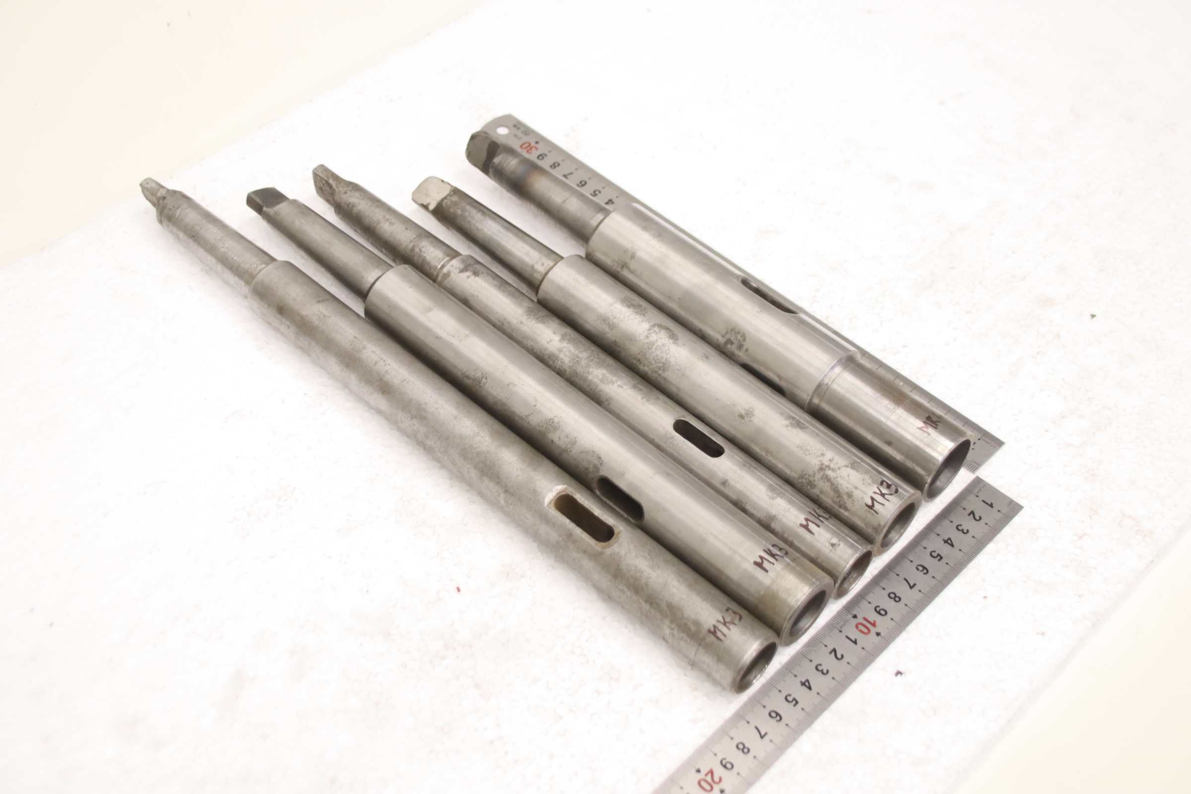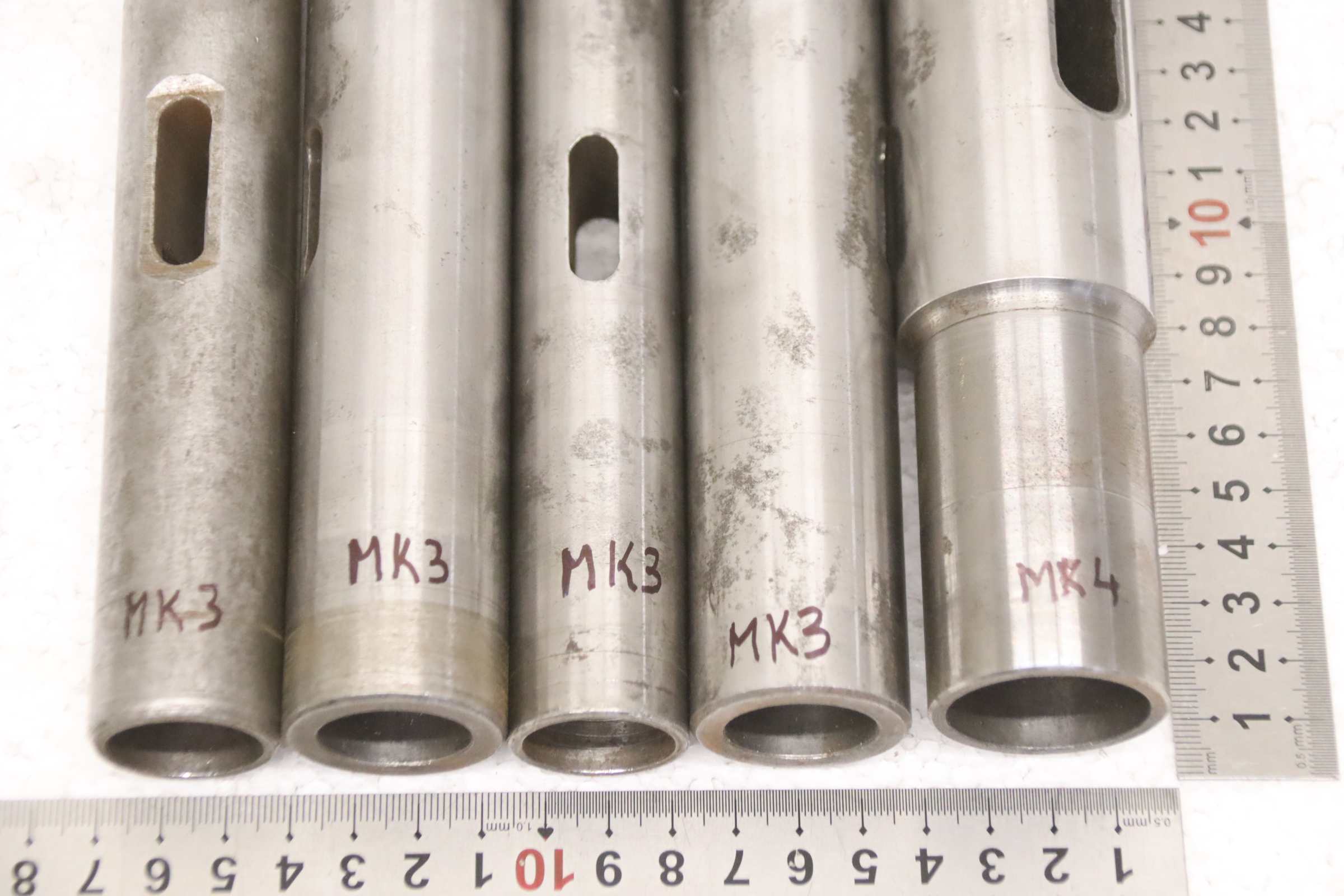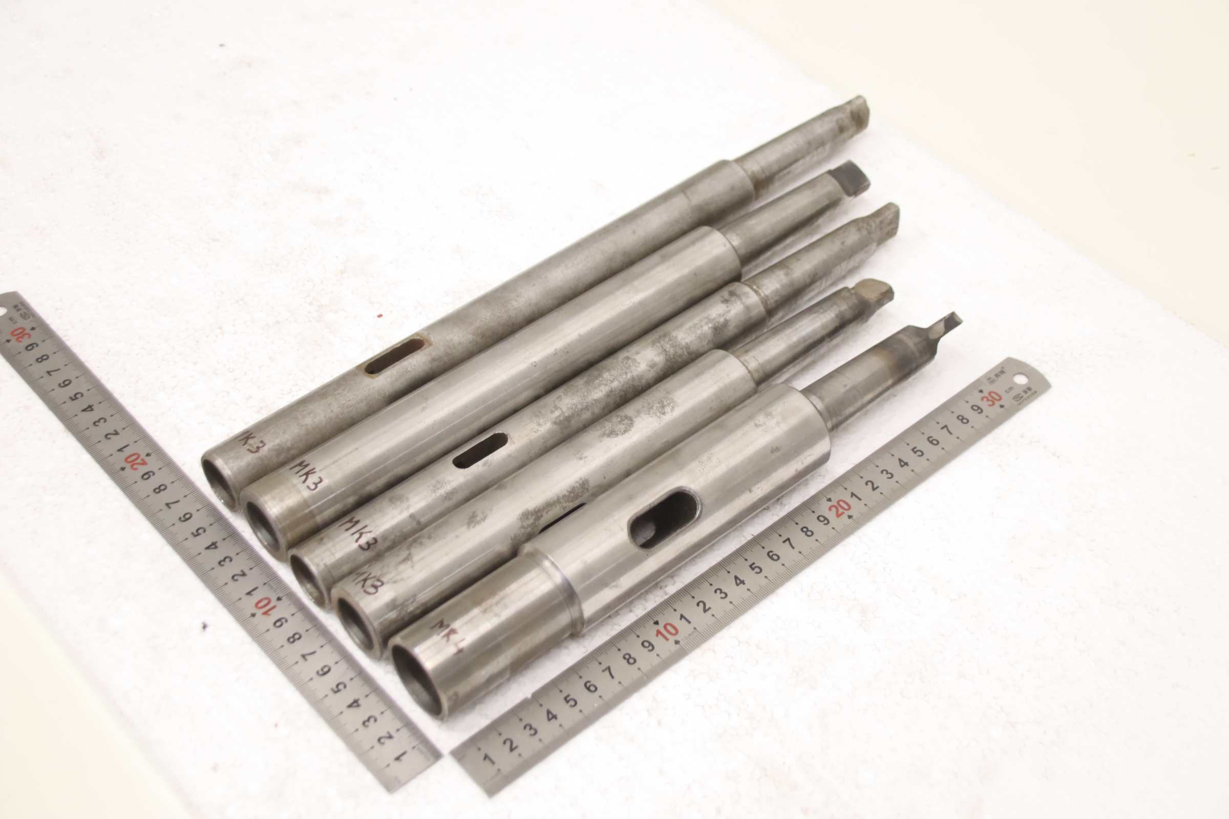 Morse taper sleeve, tool holder, Morse taper, Morse cone, taper sleeve, adapter, extension sleeve, reducing sleeve, cone sleeve, adapter sleeve, spindle sleeve -Morse taper sleeve: MK3 5 pieces -Type: 4x MK3/3 / 1x MK3/4 -Price/Fee: complete -Transport dimensions: 400/180/H45 mm -Weight: 7.8 kg