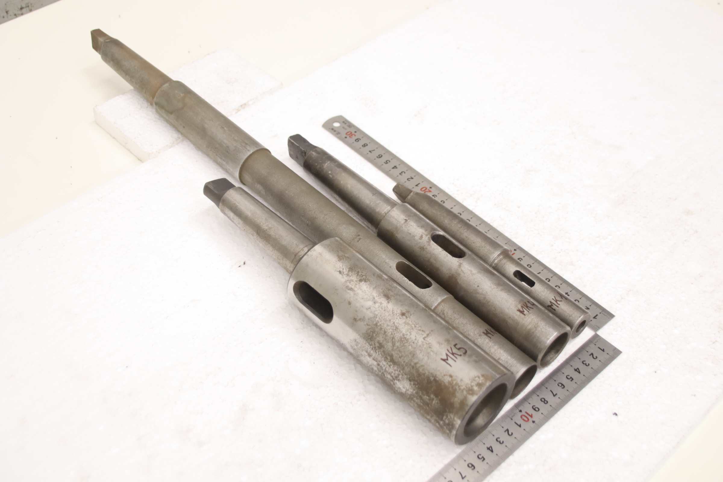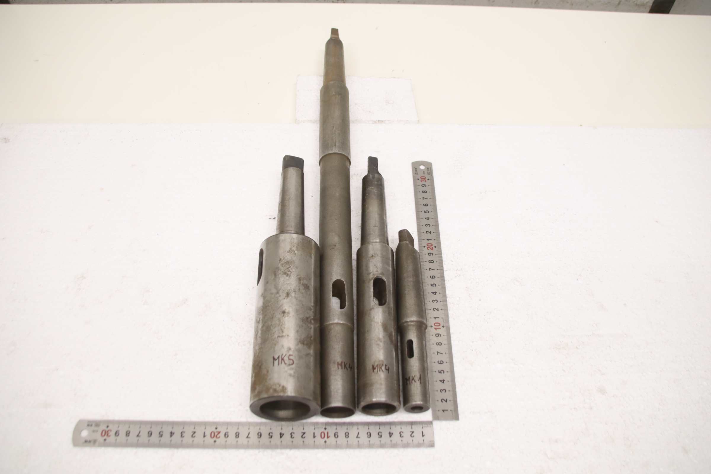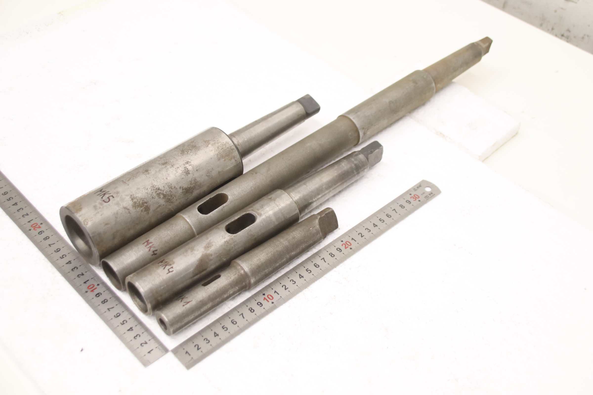 Morse taper sleeve, tool holder, Morse taper, Morse cone, taper sleeve, adapter, extension sleeve, reducing sleeve, cone sleeve, adapter sleeve, spindle sleeve -Morse taper sleeve: MK4 4 pieces -Type: 2x MK4/4 / 1x MK4/5 / 1x MK4/1 -Price/Fee: complete -Transport dimensions: 560/180/H65 mm -Weight: 9 kg