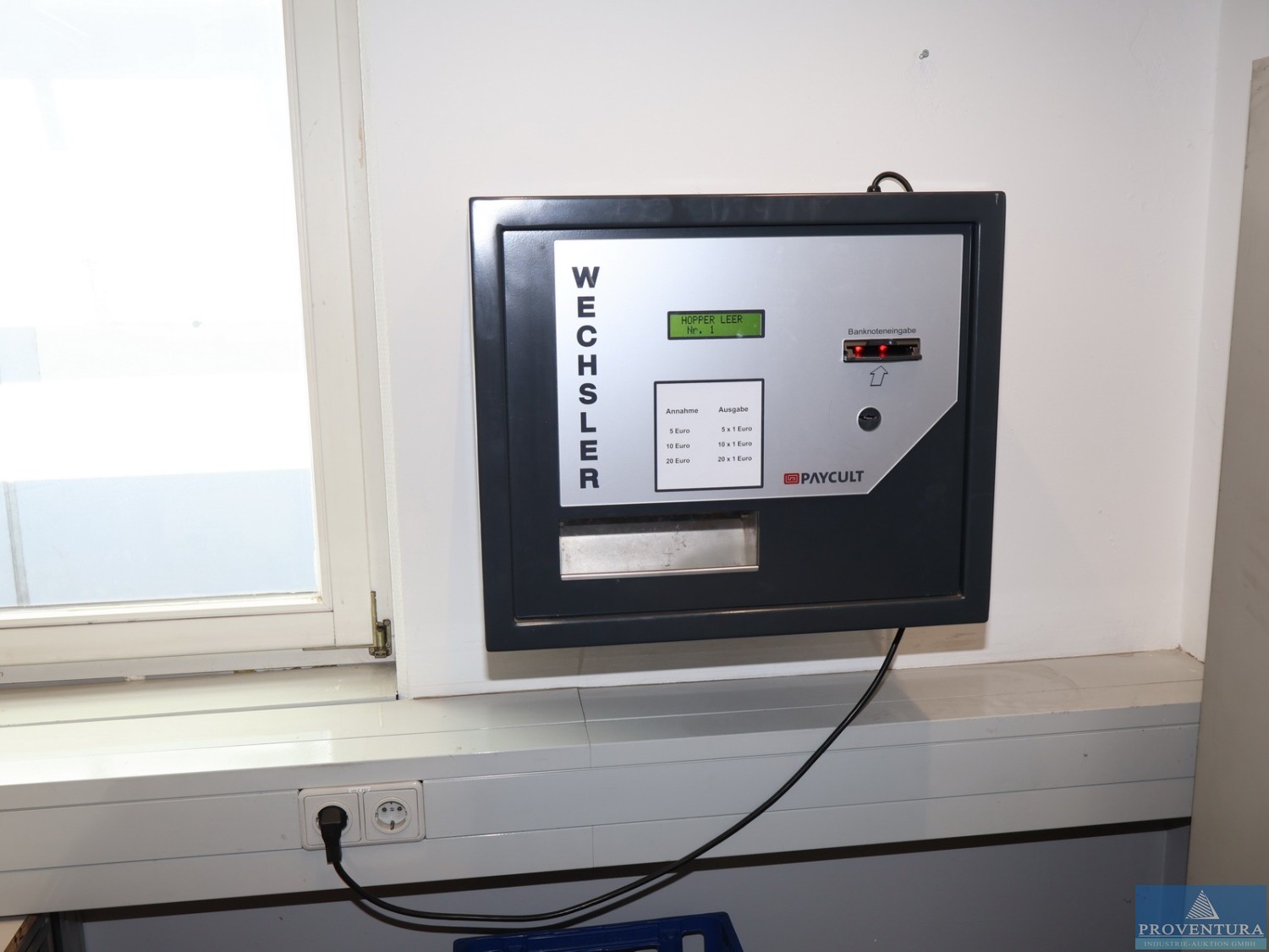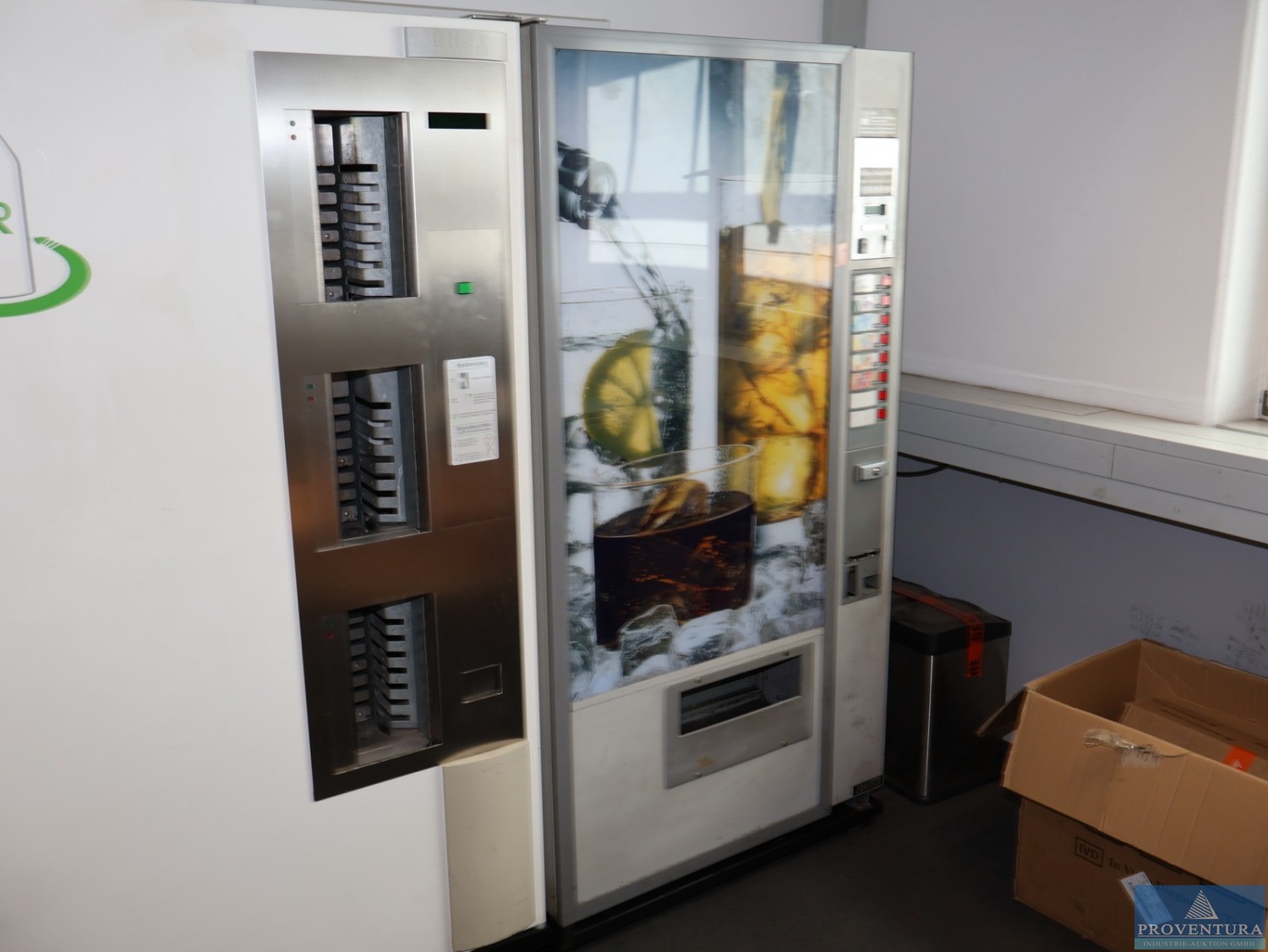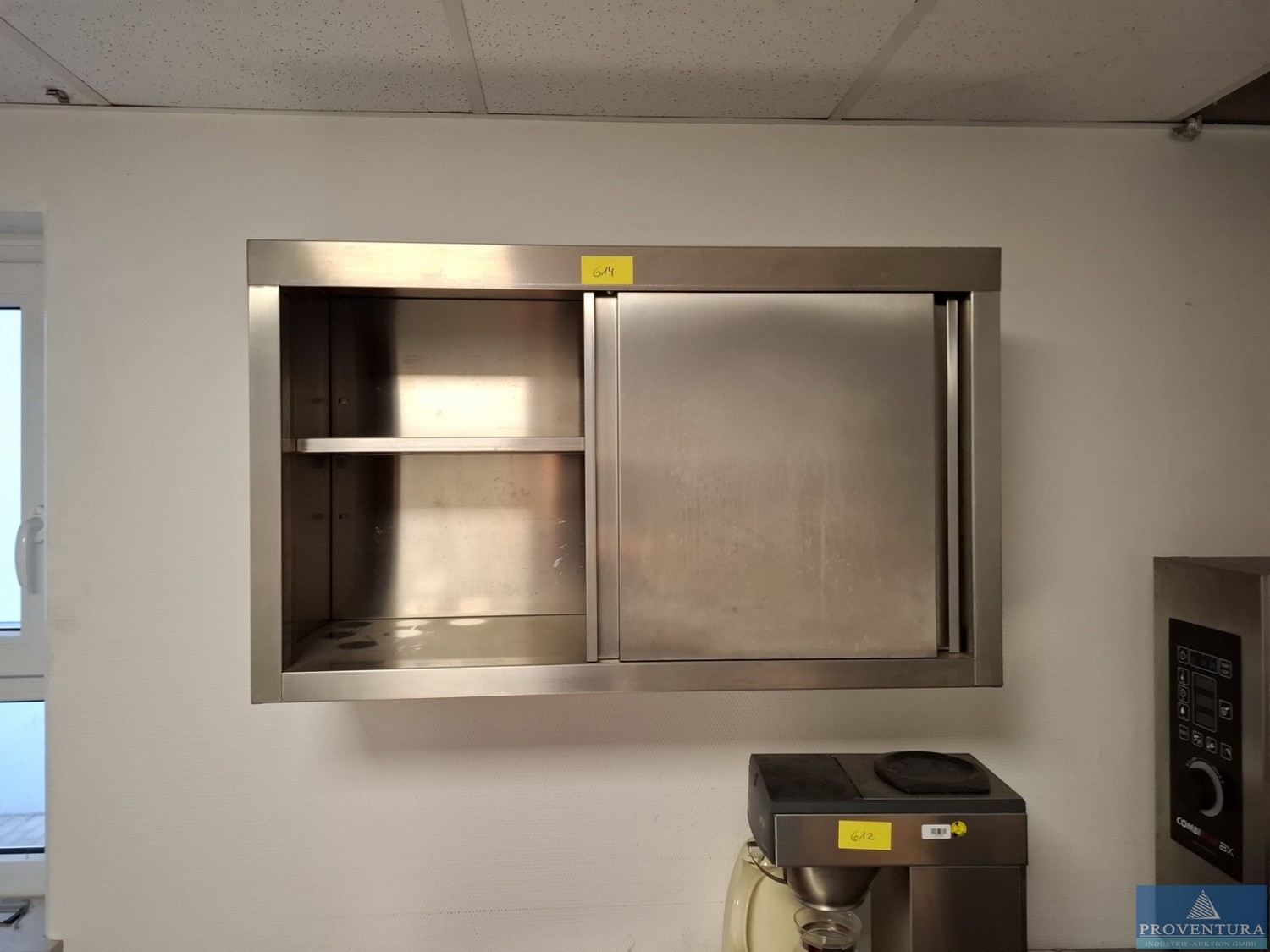 The ventilation system was used to extract kitchen exhaust air. The system is weatherproof and can therefore also be installed outdoors., Additional title: Fan for air exchange, Flow capacity: 20000 m³/h, External compression: 600 Pa Total compression: 734 Pa, Fan revolution: 1160 1/min, Noise level next to the unit: 58 dB(A) in 1 m distance, Power: 5,82 kW (inkl. Frequency converter), Motor 7,5 kW, Current: Motor-electric power 16,01 A, Voltage: Motor-Voltage 3 x 400 V, Frequency: 53 Hz, Length: approx. 4070 mm, Width: approx. 1630 mm, Height: approx. 1810 mm, Weight: 1200 kg, Operation / Control: controlled via wall mounted cabinet with integrated controllers, Material: Stainless steel cabinet, Features: Fan (free spinning wheel), Frequency controller, electrical cabinet, bird protection (780 x 780)