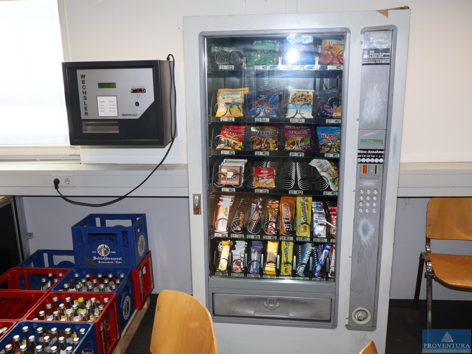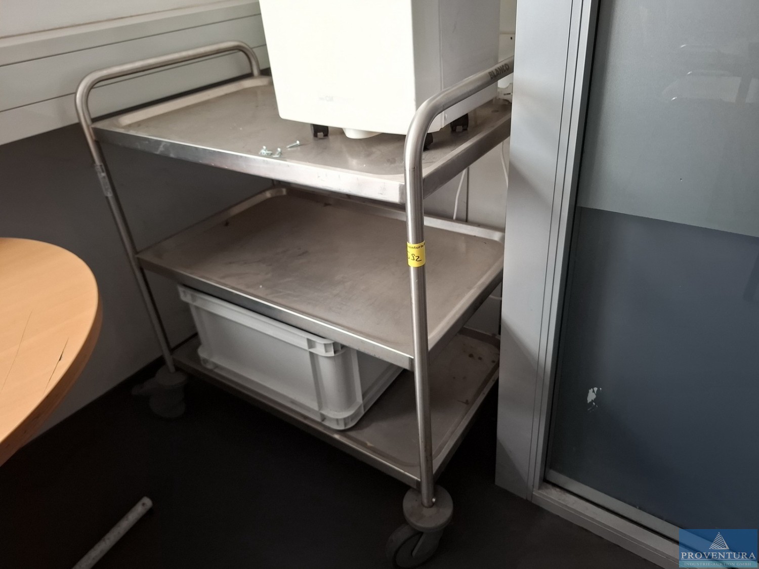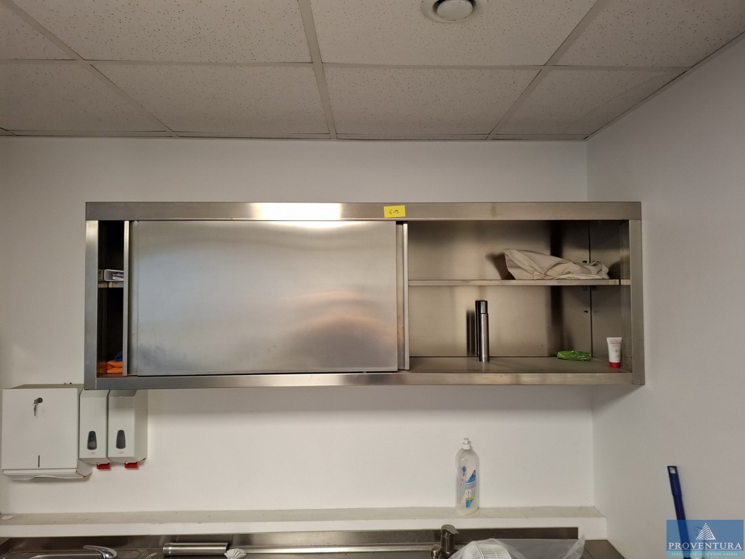 The ventilation system was used to extract kitchen exhaust air. The system is weatherproof and can therefore also be installed outdoors., Additional title: Fan for air exchange, Flow capacity: 20000 m³/h, External compression: 600 Pa Total compression: 734 Pa, Fan revolution: 1160 1/min, Noise level next to the unit: 58 dB(A) in 1 m distance, Power: 5,82 kW (inkl. Frequency converter), Motor 7,5 kW, Current: Motor-electric power 16,01 A, Voltage: Motor-Voltage 3 x 400 V, Frequency: 53 Hz, Length: approx. 4070 mm, Width: approx. 1630 mm, Height: approx. 1810 mm, Weight: 1200 kg, Operation / Control: controlled via wall mounted cabinet with integrated controllers, Material: Stainless steel cabinet, Features: Fan (free spinning wheel), Frequency controller, electrical cabinet, bird protection (780 x 780)