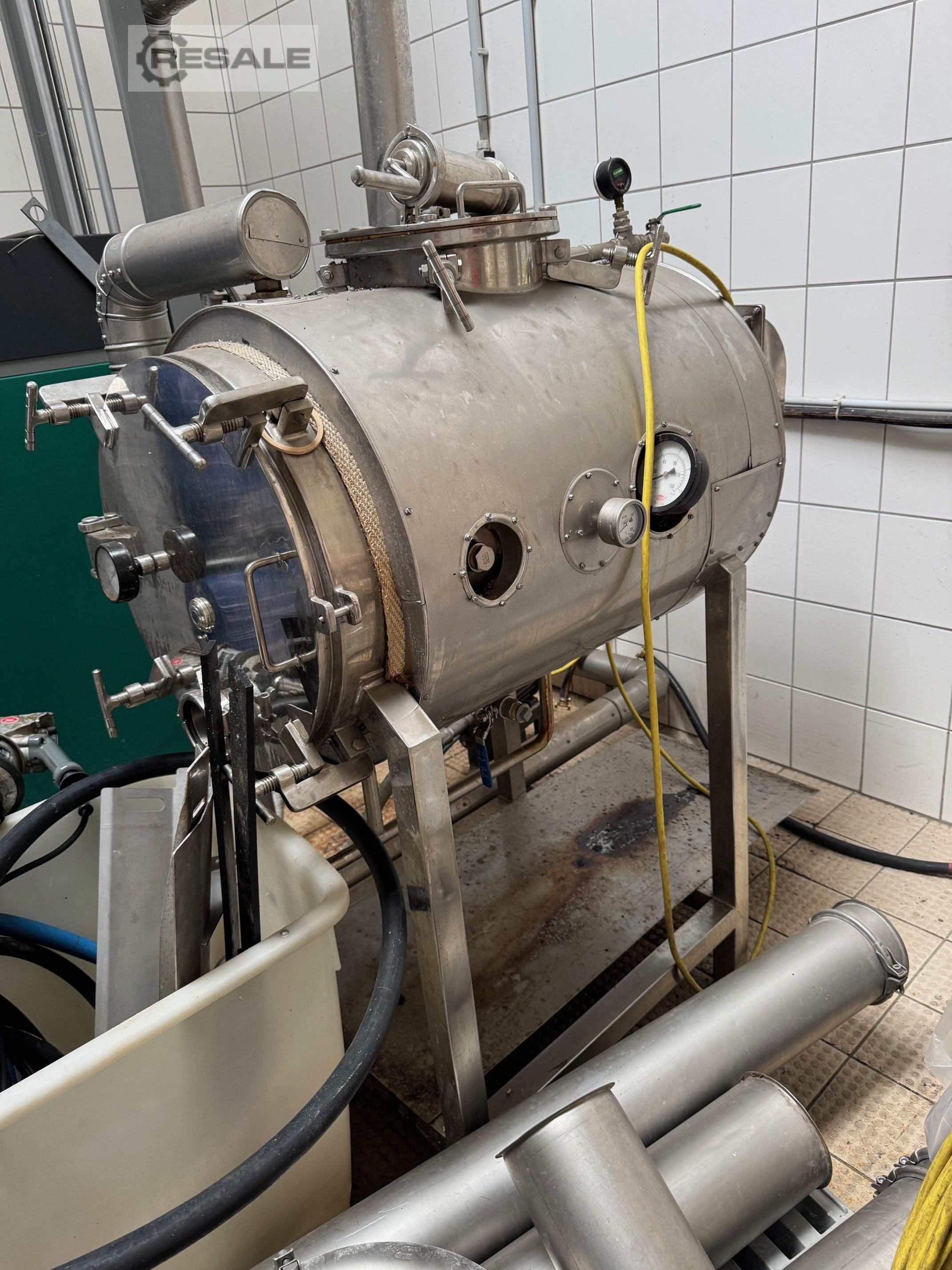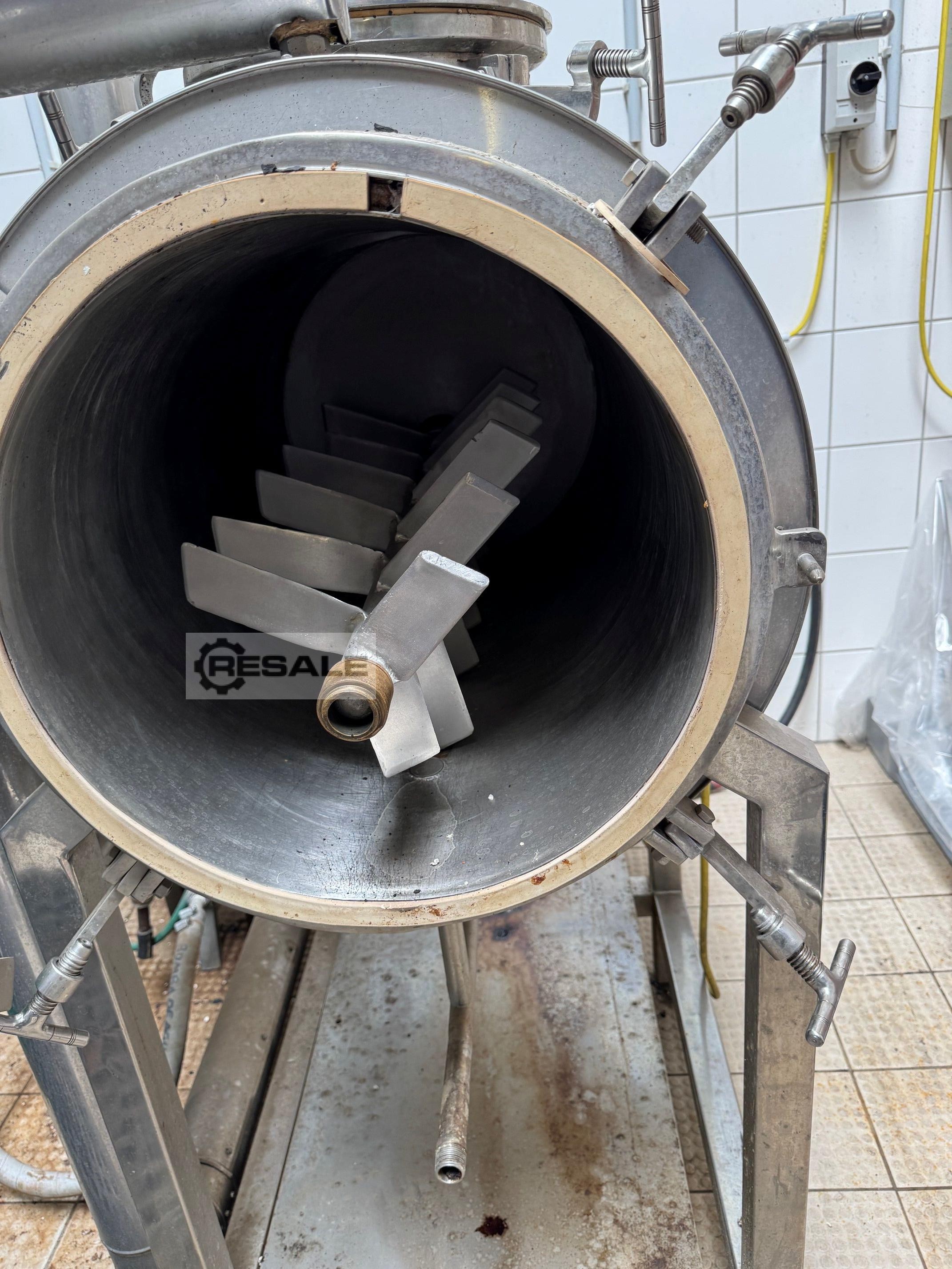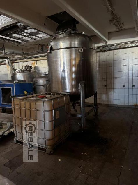 Capacité : 250kg, toutes les pièces qui entrent en contact avec le produit sont en acier inoxydable V2A, caractéristiques : ancre avec potentiomètre, agitateur à hélice, pompe à deux étages, tête de pulvérisation de nettoyage, pas de plaque signalétique. Une inspection sur place est possible.