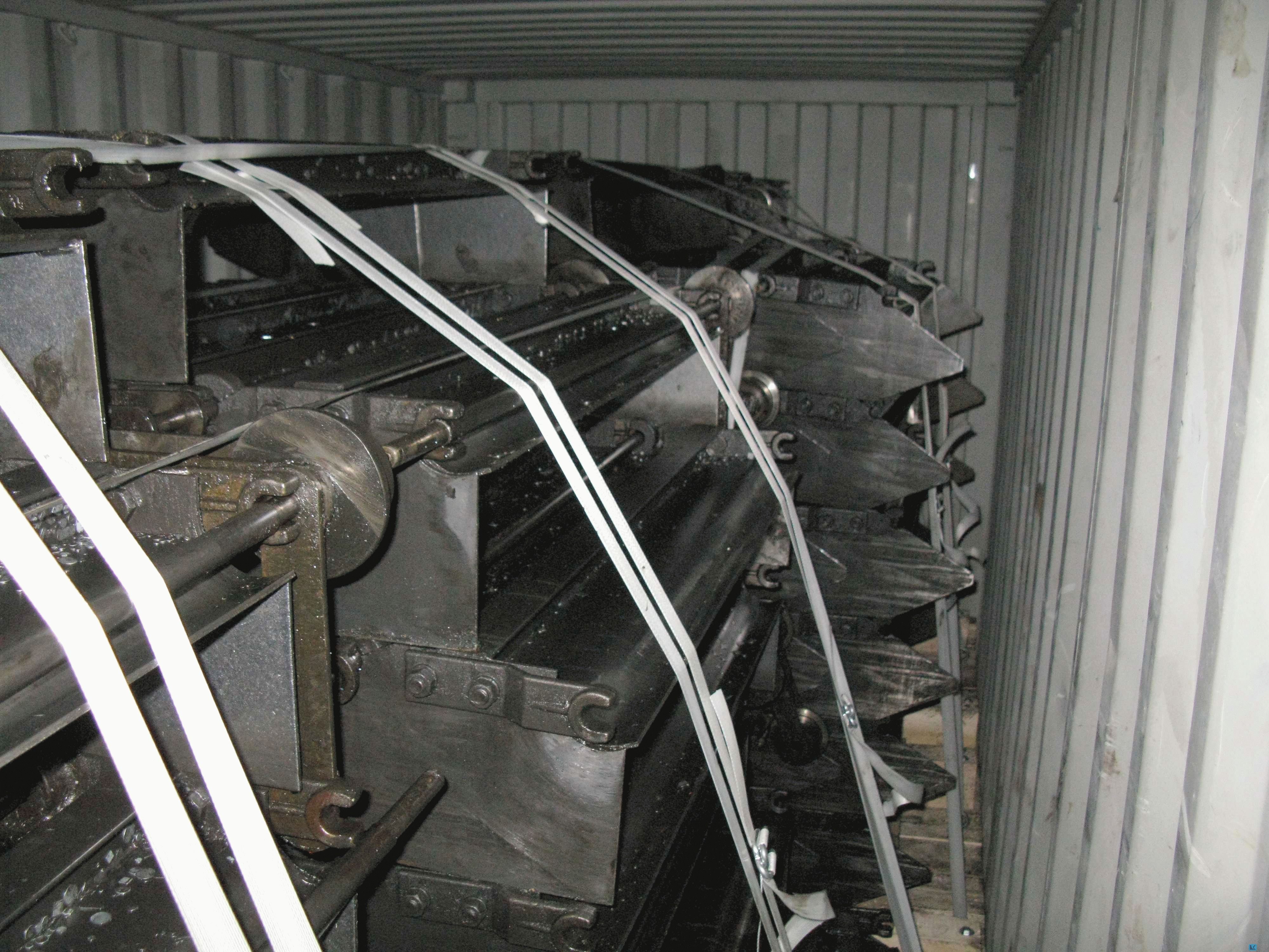 Technical description :2 UNITS SCRAP CONVEYOR SYSTEMS consisting of:- First unit being approx. 35 meters length- Second unit being approx. 40 meters length- Each having a drive unit, gearbox, reversing station- Conveyor width is approx. 1100mms- Conveyor height is approx. 1200mms. Both units were professionally dismantled, cleaned and stored carefully into containers in our warehouse in D-57258 Freudenberg some 140 km north of Frankfurt International Airport