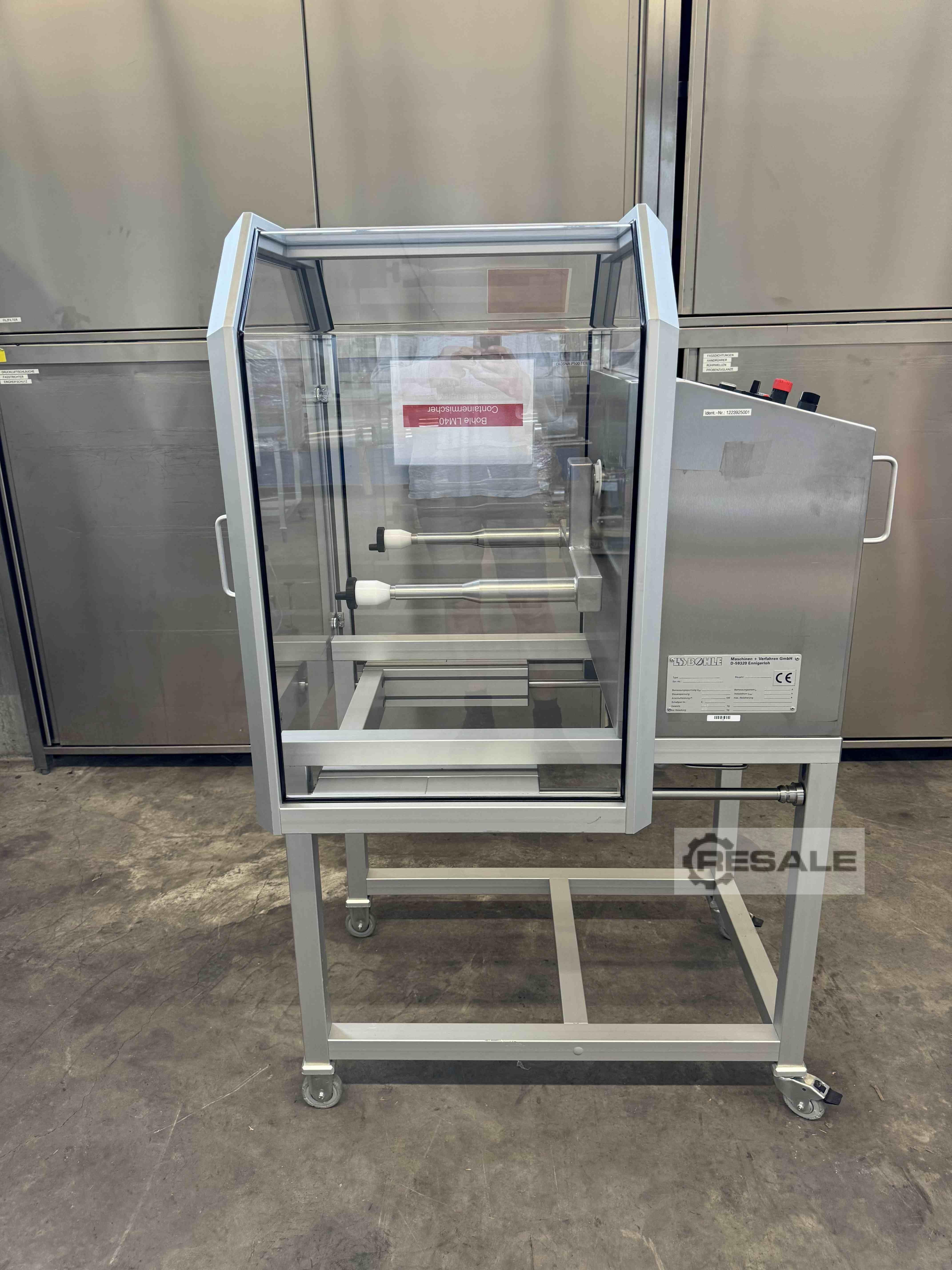 Mixer Fabricant : Bohle Type LM 40 Construction en acier inoxydable Charge utile 40 kg y compris le réservoir de mélange Minuterie Vitesse de mélange 5-50 tr/min, 230 volts Toutes les pièces de contact sont en acier inoxydable 316, en excellent état Incluant les cuves de mélange suivantes : ...