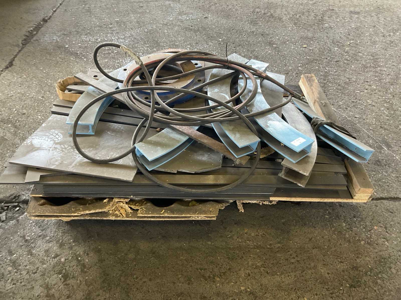 Pallet with steel plates, according to specification magaan steel including various parts on 1 pallet