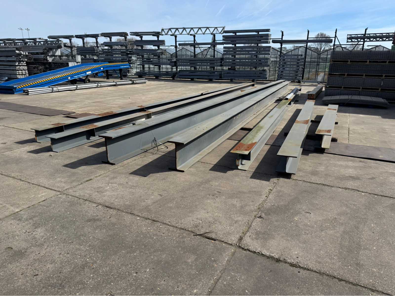2 pieces IPE 500 with a length of approx. 15000mm; the rest of the beams have the same size approx. 300mm x 300mm; 6 lengths of total various lengths, longest length is approx. 15000mm; and the shortest length is approx 4600mm