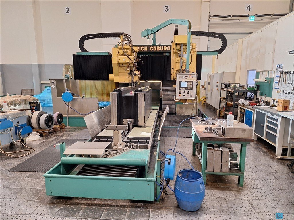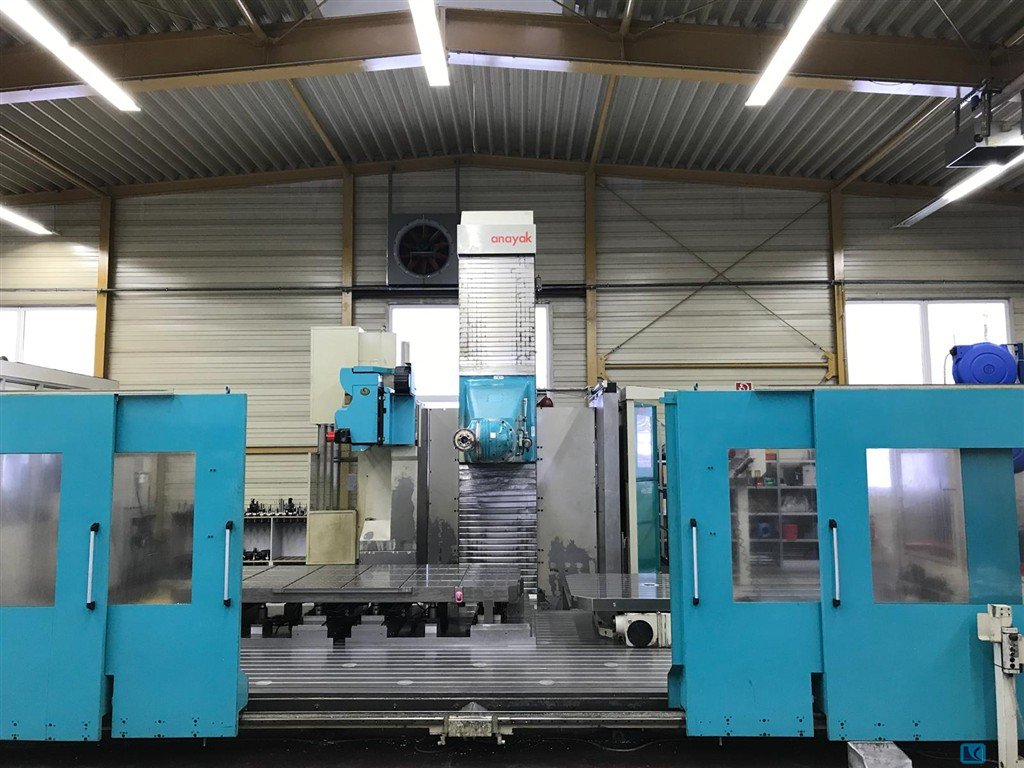 x-travel:6500/13150 mmy-travel:4000 mmz-travel:1250 mmw-axis:2250 mmtable surface area:5500/12150 x 3000 mmmax. workpiece weight:70.000/105.000 kgram head dimension:480 x 510 mmmilling spindle motor:63 kWmax. torque on the spindle:3300 Nmtool taper:DIN 39871 AD ISO 50 milling head speed:6,3 - 4000 U/minfeed speeds:1 - 24000 mm/minw-axis:1 - 6000 mm/mindistance between columns:3500 mmpassage:3000 mmtotal power requirement:120 kWweight of the machine ca.:245 tdimensions of the machine ca.:29,0 x 7,7 x 8,1 mMachine is in nearly new condition and was completely modernized in 2020!With CNC SIEMENS 840 DAutomatic tool magazine for 153 tool positionsAutomatic milling head magazine for 6 milling headsMachining module ? straight ? straight long ?Machining module ? angle standard ? 4000 rpm, 144 x 2.5°, ISO 50Machining module ? narrow angle extended ? 40 kW, 4000 rpm, 1800 Nm, 144 x 2.5°, ISO 50 ...