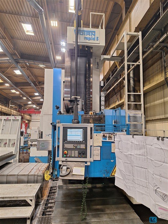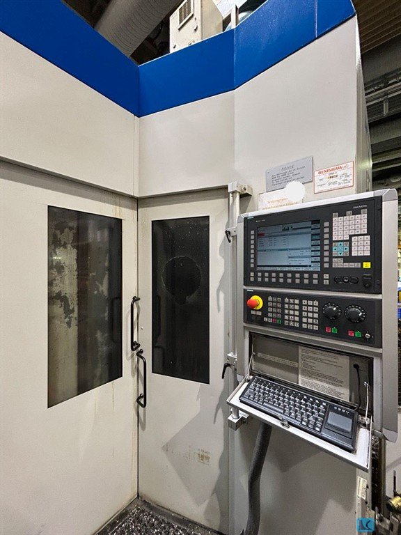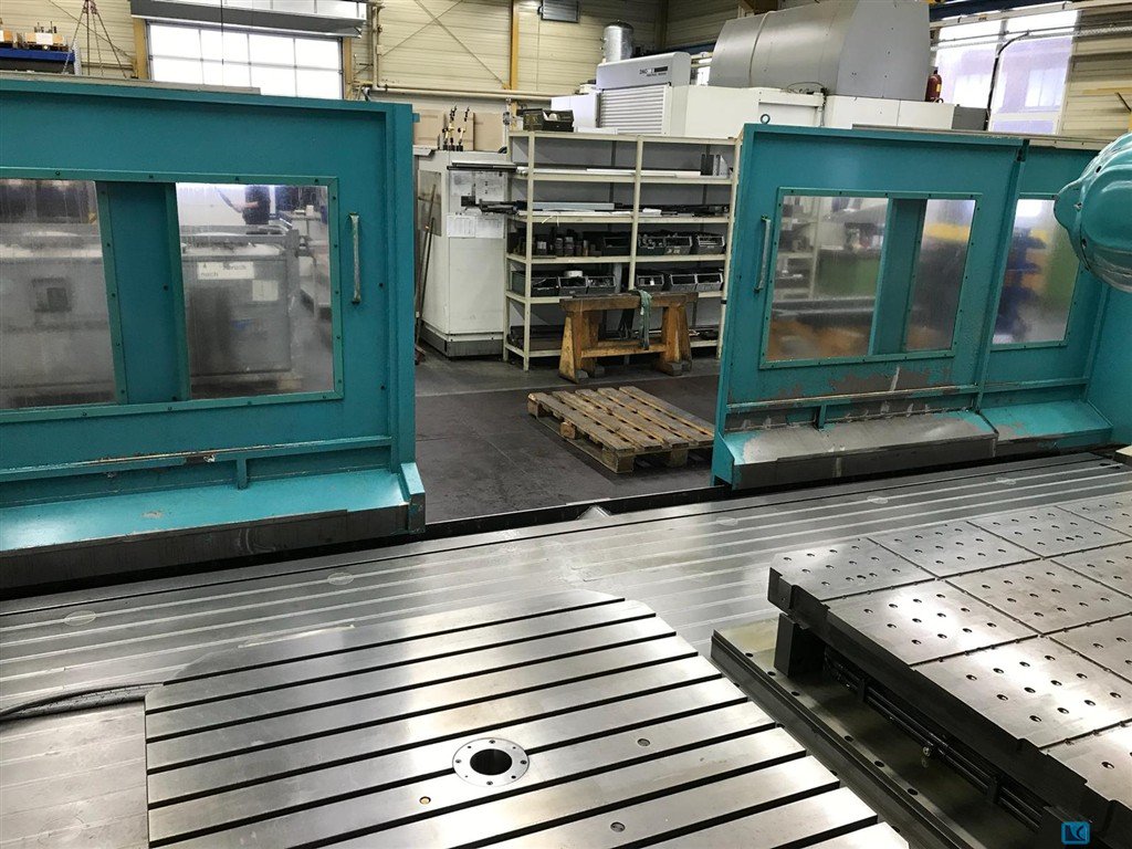 x-travel:6.300 mmy-travel:2.000 mmz-travel:2.700 mmtool taper:ISO 50 surface area:7.000 x 3.000 mmturning speed range:60 - 4.000 U/minpower capacity:22/30 kWfeeds:0 - 10.000 mm/minrapid traverse:20.000 mm/minTool changer:80 max. workpiece weight:8.000 kgPlate clamping area 7,000 x 3,000 mmCNC rotary table 1,500 mmOrthogonal milling headDeep drilling unitIKZPaper belt filterMeasuring probe