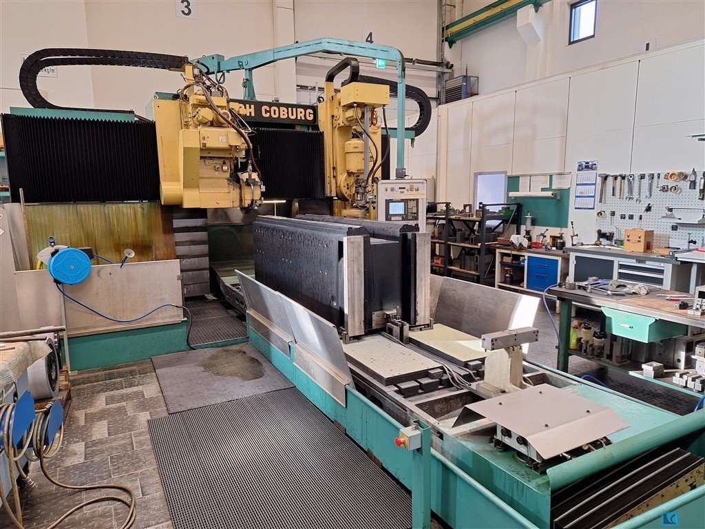 spindle diameter:150 mmx-travel:10000 mmy-travel:2500 mmbore spindle stroke:700 mmSpeed of boring spindles:1,25 - 1250 U/min.ram stroke:700 mmdimension of the ram:340 x 340 mm mmspindle taper ISO:50 rapid traverse:5 m/mintotal power requirement:120 kWweight of the machine ca.:115 tdimensions of the machine ca.:15,1 x 10 x 6,4 mCNC control Siemens 840 Dsl completely modernized 2010FIBRO CNC drilling work table 2500 x 2500 mm50 to. workpiece weightLongitudinal travel 2500 mmAngular milling head 4 x 90°Universal angular milling headPanel area approx. 10000 x 5000 mmChip conveyor and coolant deviceAerostatic guides