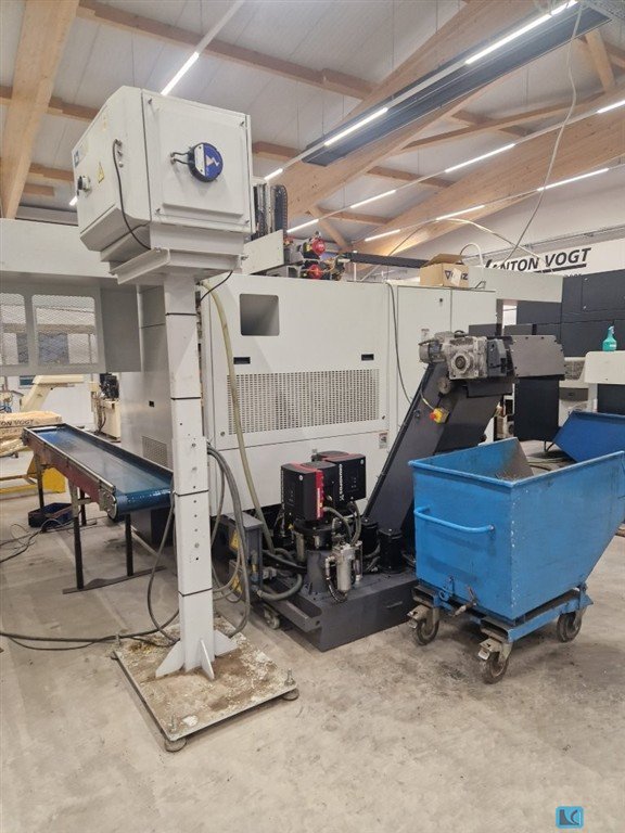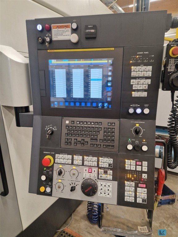 turning diameter:220 mmturning length:- mmcontrol:- distance between milling spindels:800 mmspindle speed max.:12.000 U/mindaylight:66 mmmachine weight ab.:11 ttotal power requirement:90 kVAFanuc controlTwo turretsTwo spindlesSpindle bore 66 mm on both spindlesTwo Y-axesParts gripperHainbuch chuck on both spindlesTailstock functionChip conveyorTool eyeShort bar loaderTool holder package