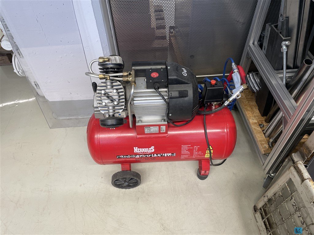 ParameterValueModel NameHerkules 450/10/50TypePiston Air CompressorTank Capacity50 litresMax. Operating Pressure10 bar Motor Power2.2 kW / ~3 HPVoltage230 V AC Frequency50 HzEngine Speed2800 rpmAir Intake Capacity400 L/minAir Delivery (Effective)320 L/min Noise Level95?97 dB Number of Cylinders2 (twin cylinder)LubricationOil-lubricated systemTypical UsesHome workshop, tire inflation, air tools, painting