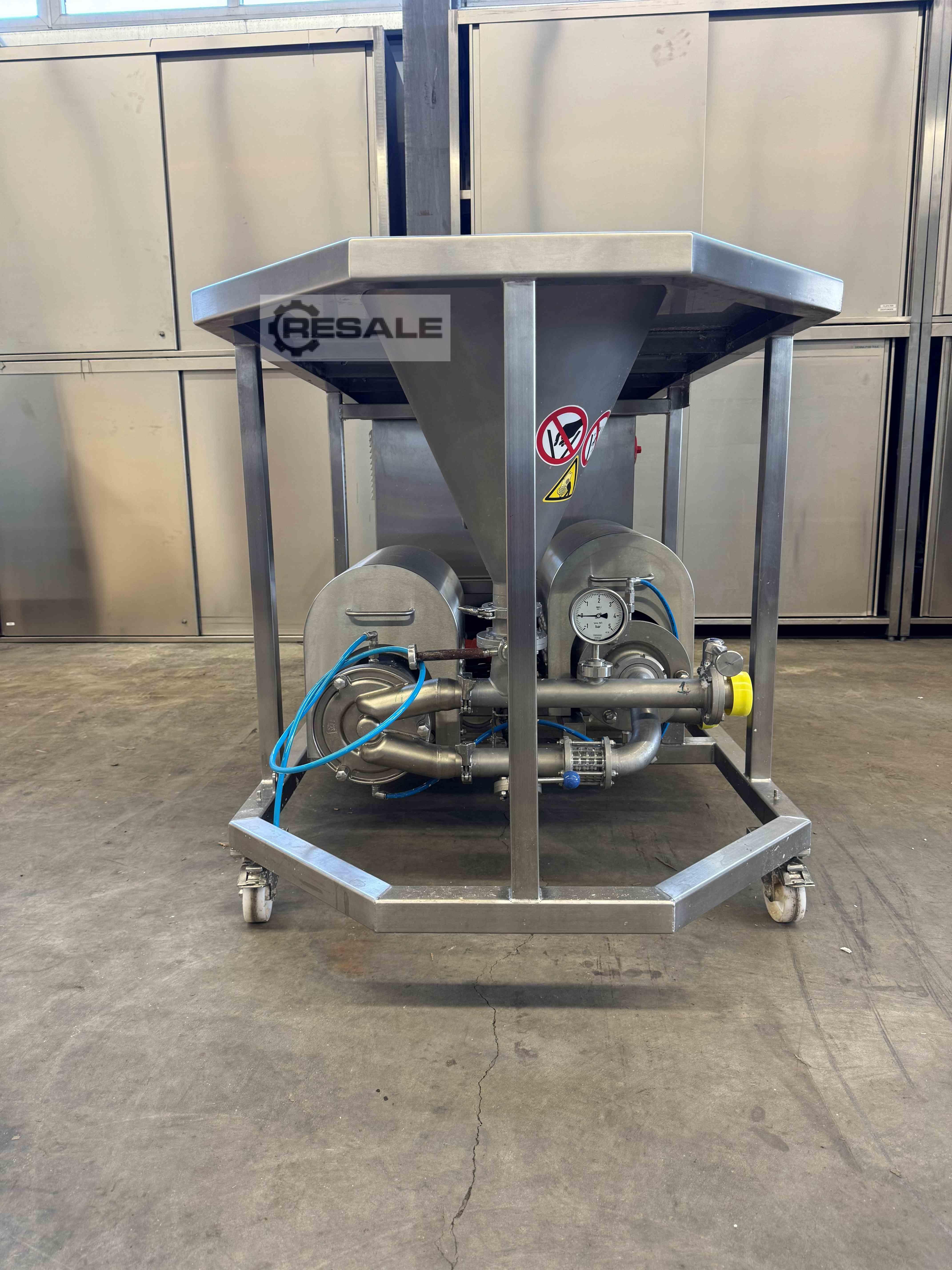 Mélangeur à poudre en parfait état avec pompe centrifuge Fristam FZ auto-amorçante