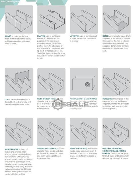 de profils formés à froid de type C et U de différentes dimensions.