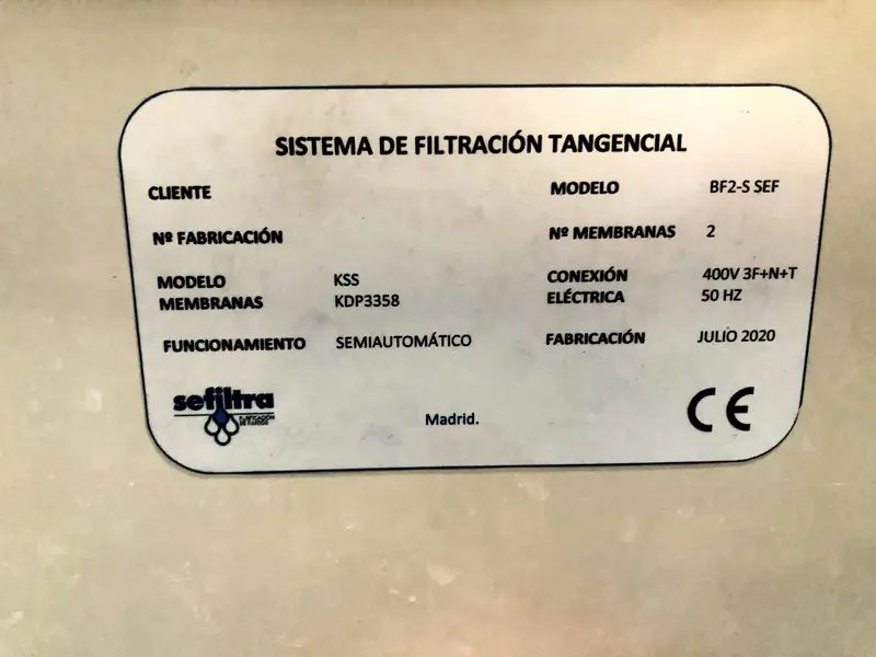 Filtre à flux croisé utilisé SEFILTRA jusqu’à 3000 L/h Introduction à la filtration à flux croisé Premièrement, la filtration à flux croisé SEFILTRA est une solution de pointe dans le domaine de l’embouteillage. Ce modèle spécifique, le BF2-S SEF, produit en 2020, se distingue par sa capacité à traiter jusqu’à 3000 litres par heure. De plus, la filtration à flux croisé utilise des membranes organiques pour une efficacité optimale, représentant une technique avancée et fiable dans le traitement liquide. Caractéristiques techniques du BF2-S SEF De plus, le BF2-S SEF de Sefiltra est actuellement en production et continue de démontrer son efficacité et