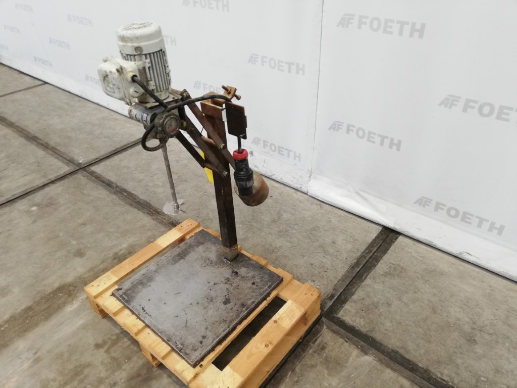 General SKU201T016 LocationBarneveld Main Features MaterialStainless steel Motor0.18 KW Length300 mm Specified Features - Stirrer Stirrercheck Dissolver stirrercheck Shaft length300 mm Sizes stirring headØ90x10 mm Number of stirrers on shaft1 Motor0.18 kW 220/380 (Ex) With variable speed driveNeuweg Variducer Speed mixing shaft0-10 rpm Mounted on supportcheck Adjustable heightcheck Information MakeUnknown, manufacturer plate is missing Floorspace0,7x0,5 m9 Total height1,1 m Weight80 Kg ATEX compatiblecheckStirrers-Mixers > StirrersBrand > - What you can expect from Foeth: -- Machine is in working condition -- At a reduced price compared to new -- Ready for shipping to any destination worldwide -- You are welcome to inspect the machine in Barneveld, The Netherlands. Please visit us in Barneveld for many more machines!