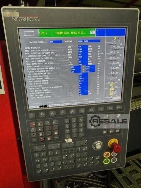 Presse à injecter NEGRI BOSSI 800 T Vector type 8000H-8400 Année : 2018 Nombres d’heures. : 25 000 heures Commande : TACTUS Force de verrouillage : 800 T Diamètre vis : 110 mm Volume injectable : 5160 cm3 Poids en PS : 4720 gr Pression d’injection : 2020 bars Dimensions des plateaux : 1670 x ...
