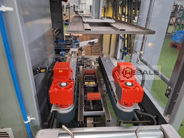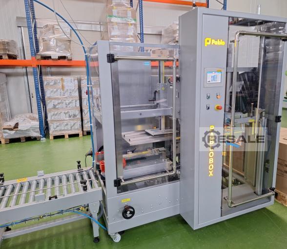 Pablo cartonner d’occasion type Pablobox 546. L’appareil forme des cartons, colle après le chargement manuel du produit, ferme la boîte et colle la colle.