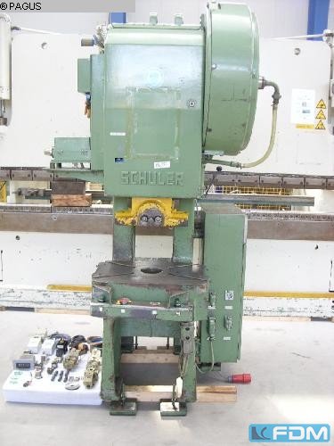 pressure:125 tstroke:25 fix mmno. of strokes:70 - 700 /mindistance between columns:1150 mmdistance table/ram, max. stroke up, adjustment up:400 mmtable surface area:1150 x 1000 mmhole in the table:900 x 220 mmside window:650 mmram surface:990 x 850 mmram adjustment:60 mmmaterial width:250 mmmaterial thickness:2,5 mmpower requirement:46,5 kWweight:29,5 troll feed:mechanical, Schuler, WK 8-250