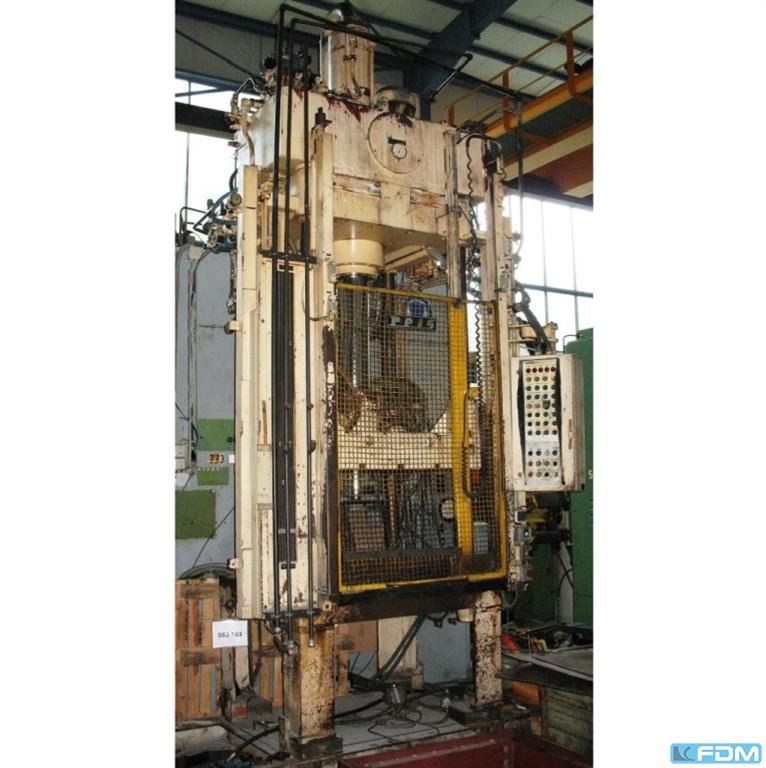 pressure:1000 tdistance between columns:3030 mmstroke:350 mmDistance table/ram, max. stroke up, adjustment up:1400 mmtable surface area:3000 x 2000 mmtable height over floor:430 mmside window:1450 x 1400 mmram surface:3000 x 2000 mmspeed down:300 mm/sspeed up:340 mm/sworking speed:18 - 44 mm/sreturn capacity:120 toil volume:4400 lwidth with platform:4950 mmpower capacity:2 x 90,0 + 10,0 kWweight:87,0 tDimensions (WxDxH):4,35 x 3,65 x 7,55 mheight over floor:6,05 mheight beneath floor:1,5 mGerman Safety: permitted for manual loading:UVV 11.064 - VBG 7n5.2
