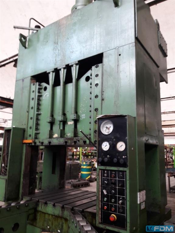 pressure:160 tdistance between columns:1340 mmstroke:300 mmDistance table/ram, max. stroke up, adjustment up:620 mmtable surface area:1300 x 900 mmtable height over floor:930 mmside window:600 mmram surface:1300 x 900 mmspeed down:367 mm/sspeed up:390 mm/sworking speed:58 mm/spower requirement:30,0 kWweight:15,0 tDimensions (WxDxH):2,5 x 2,2 x 4,0 mGerman Safety: permitted for manual loading:UVV 11.064 - VBG 7n5.2 foundation pit:not necessary