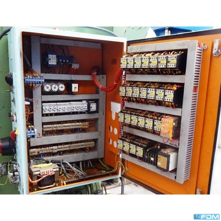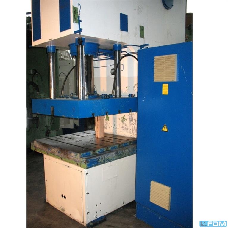 pressure:100 tdistance between columns:1000 mmstroke:300 mmdistance table/ram, max. stroke up, adjustment up:650 mmtable surface area:980 x 700 mmpressure of drawing cushion in table:4 x 10 / 1 x 20 tstroke of drawing cushion in table:180 mmtable height over floor:800 mmside window:400 mmram surface:1000 x 700 mmspeed down:500 mm/sspeed up:450 mm/sworking speed:60 mm/spower requirement:40,0 kWdimensions (WxDxH):1,5 x 1,4 x 4,5 mGerman Safety: permitted for manual loading:UVV 11.064 - VBG 7n5.2 drawing cushion in table:4 x 10 t + 1 x 20 t, getrennt einschaltbar foundation pit:nicht erforderlich