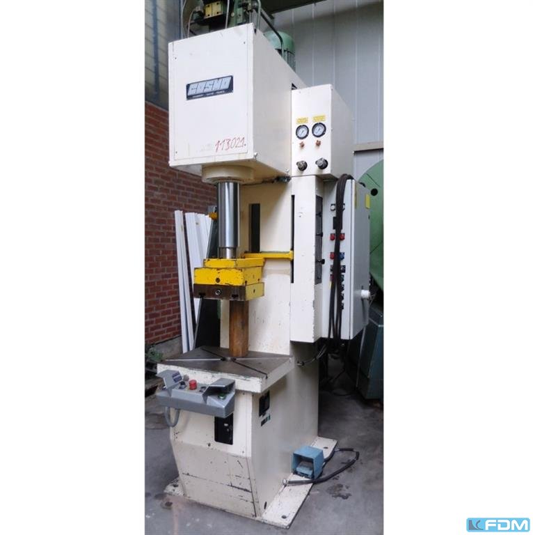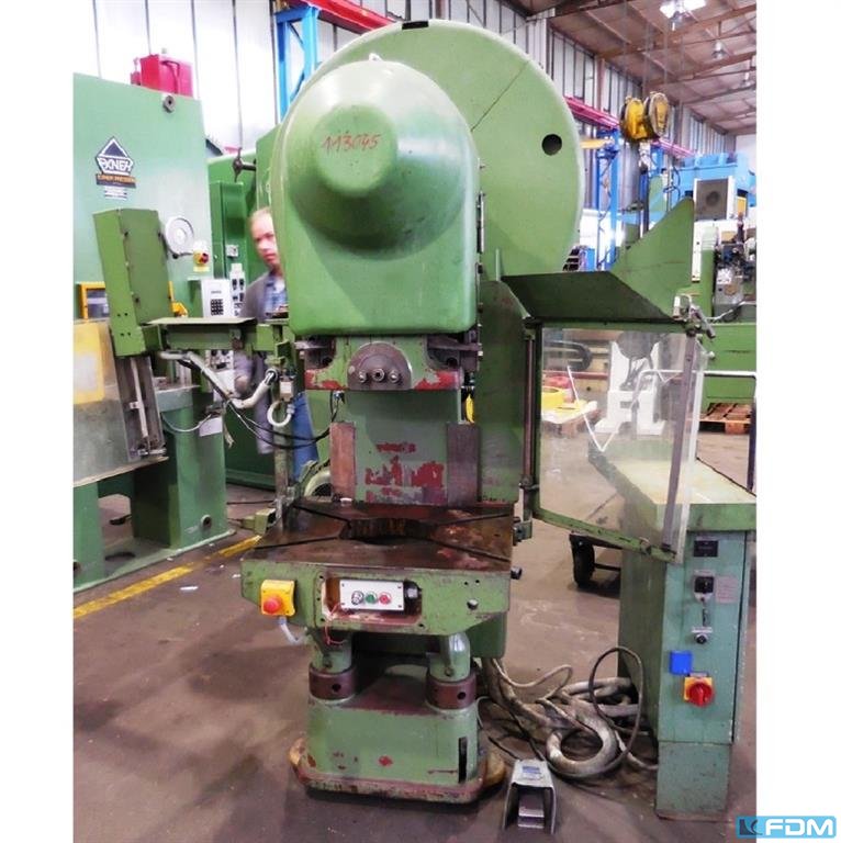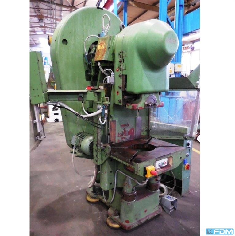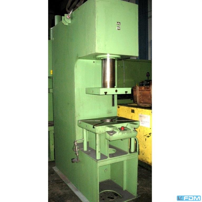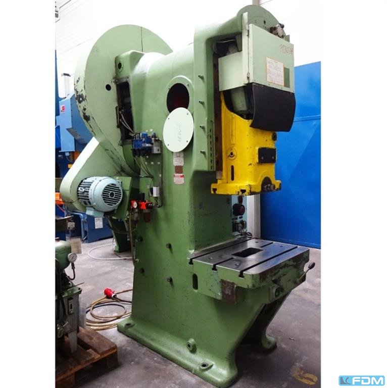 pressure:100 tthroat:315 mmstroke:30 - 160 mmno. of strokes:40 /mindistance table/ram, max. stroke up, adjustment up:460 mmtable surface area:910 x 680 mmHole in the table:400 mmtable height over floor:800 mmpassage to the back:400 mmram surface:630 x 400 mmram adjustment:80 mmpower requirement:7,5 kWweight:7,5 tdimensions (WxDxH):1,7 x 2,0 x 3,0 mGerman Safety: permitted for manual loading:UVV 11.062 - VBG 7n5.1 clutch:pneumatic overload protection in ram:mechanical ram counterbalance:pneumatic