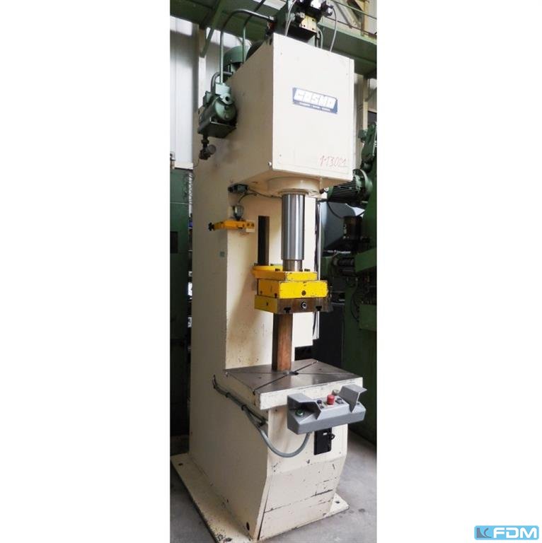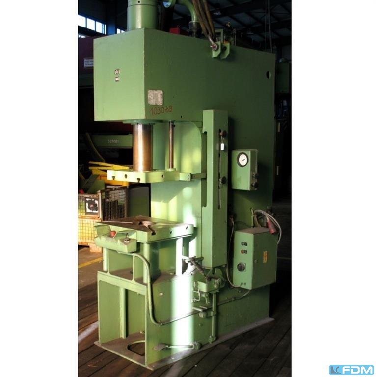 pressure:150 tdistance between columns:300 mmstroke:180 mmdistance table/ram, max. stroke up, adjustment up:300 mmtable surface area:570x180 / 300x410 mmtable height over floor:875 mmside window:180 mmram surface:180 mmspeed down:250 mm/sspeed up:160 mm/sworking speed:6 - 12 mm/soil volume:250 lpower requirement:11,0 kWweight:2,4 tdimensions (WxDxH):1,3 x 1,3 x 2,4 mGerman Safety: permitted for manual loading:UVV 11.064 - VBG 7n5.2 § 20 foundation pit:nicht erforderlich