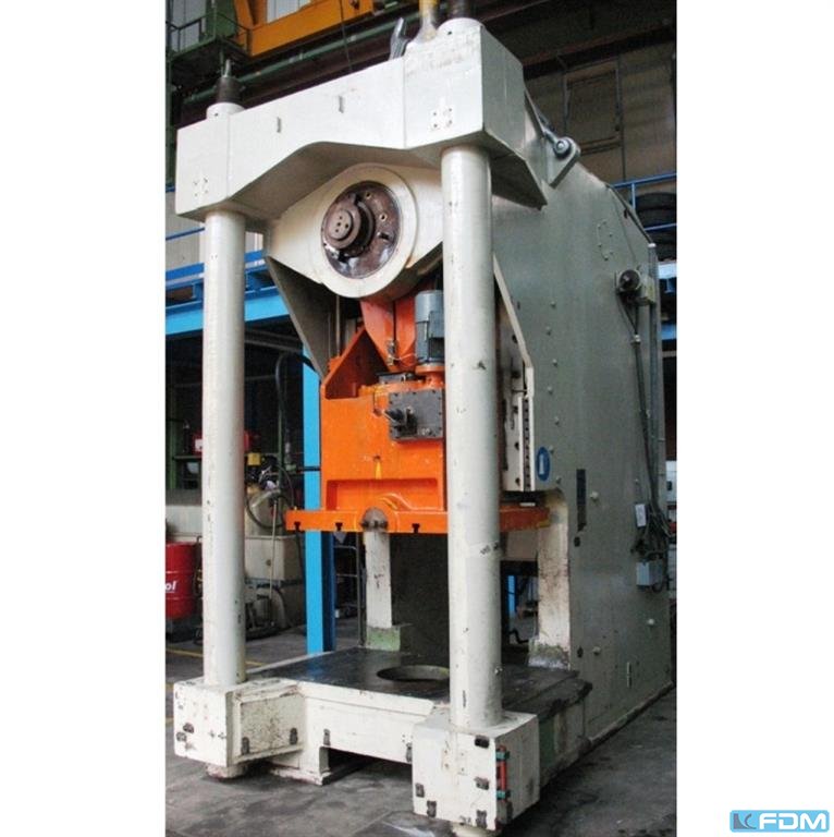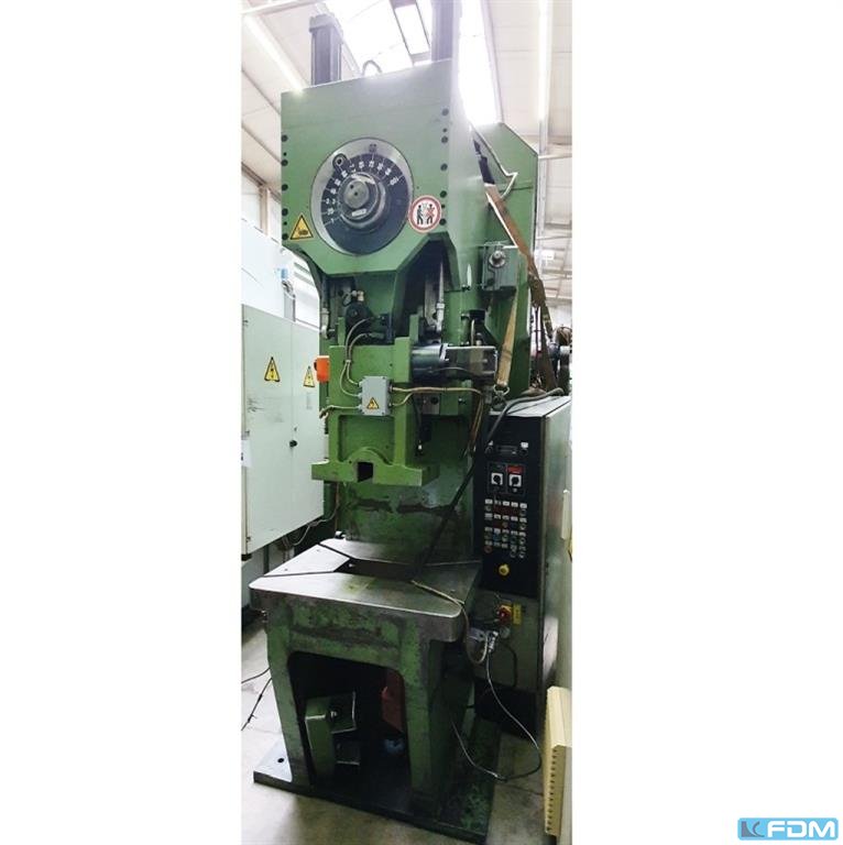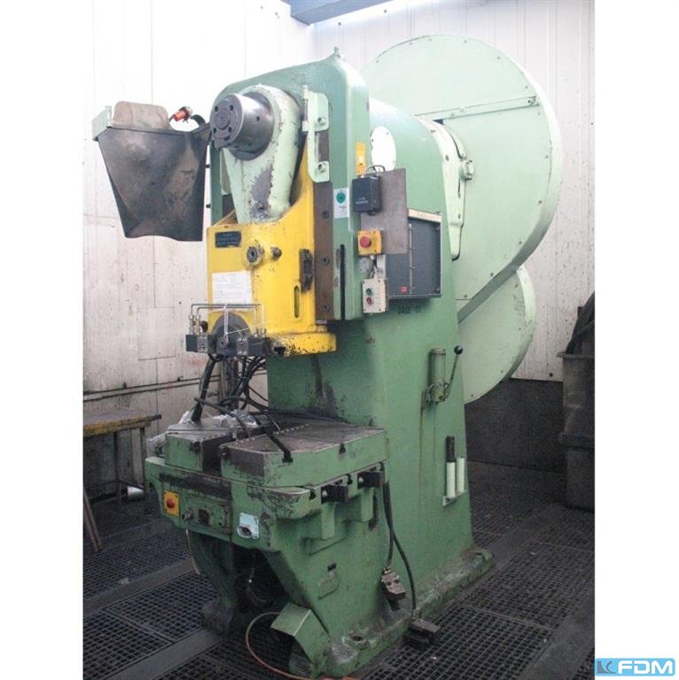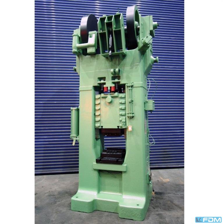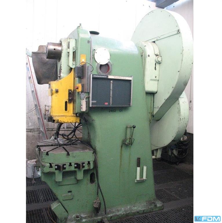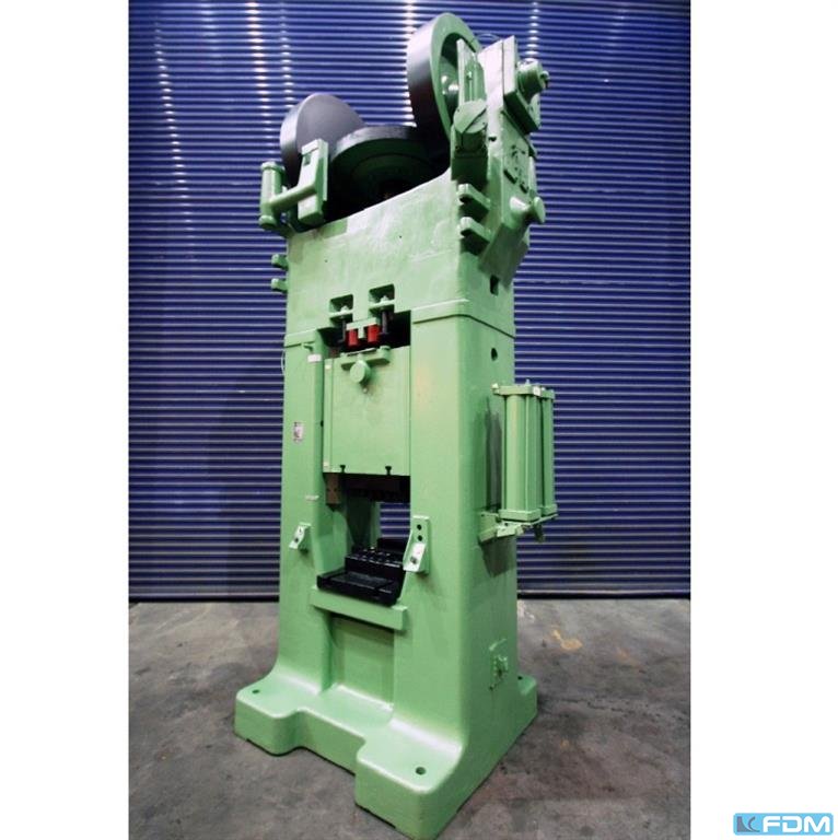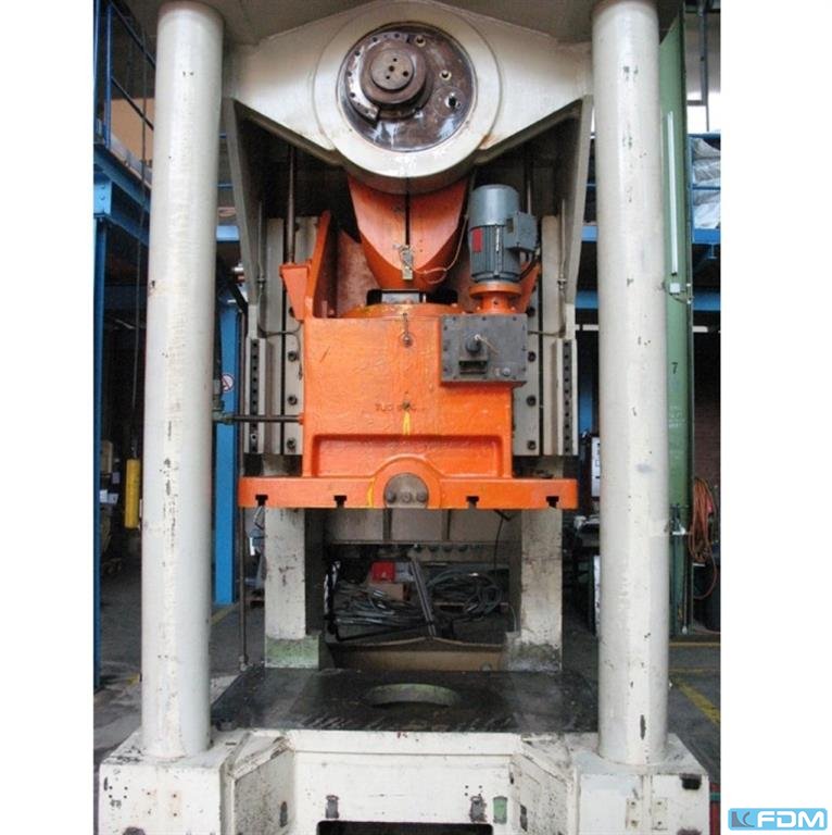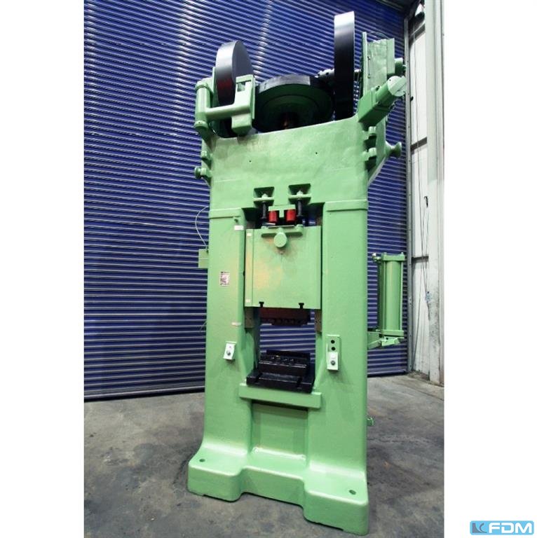 pressure:150 tthroat:520 mmstroke:30 - 200 mmno. of strokes:15 - 60 /mindistance table/ram, max. stroke up, adjustment up:650 mmtable surface area:1600 x 1000 mmhole in the table:1040 x 140 mmtable height over floor:1000 mmpassage to the back:1000 mmram surface:1400 x 800 mmram adjustment:120 mmpower requirement:20,0 kWweight:27,5 tdimensions (WxDxH):2,3 x 2,75 x 4,5 mclutch-/ brake combination:pneumatic; Ortlinghaus overload protection in ram:hydraulic ram counterbalance:pneumatic ram adjustment:semi-automatic Option: NEW electrical controls:Siemens S7-1500 F