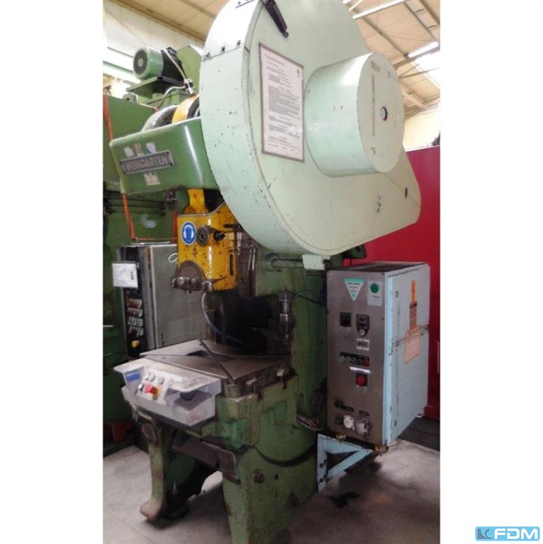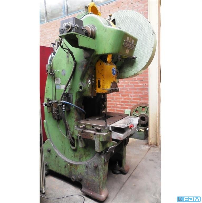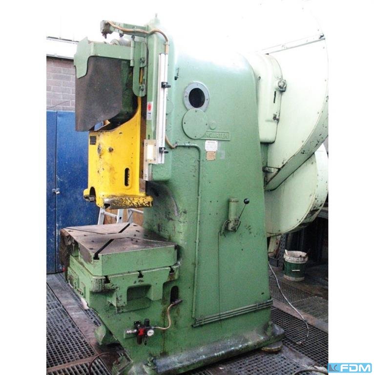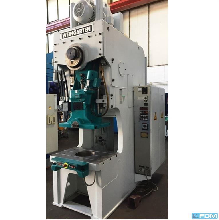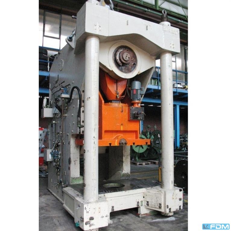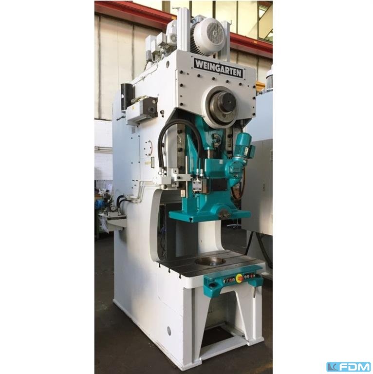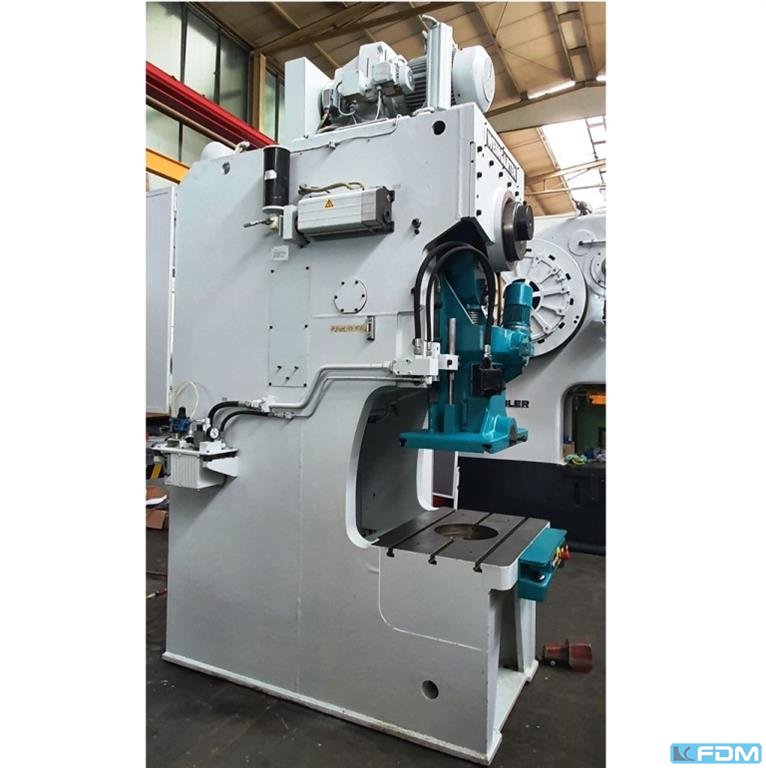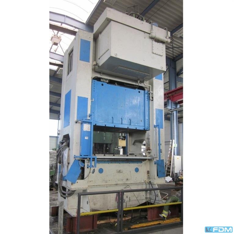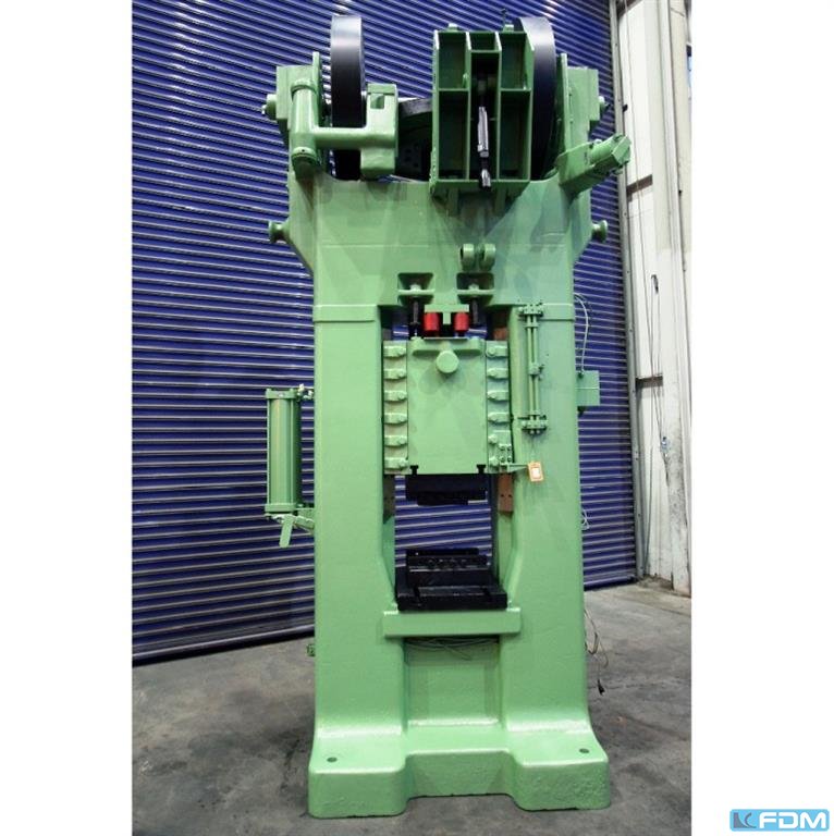 pressure:150 tthroat:520 mmstroke:30 - 200 mmno. of strokes:15 - 60 /mindistance table/ram, max. stroke up, adjustment up:650 mmtable surface area:1600 x 1000 mmhole in the table:1040 x 140 mmtable height over floor:1000 mmpassage to the back:1000 mmram surface:1400 x 800 mmram adjustment:120 mmpower requirement:20,0 kWweight:27,5 tdimensions (WxDxH):2,3 x 2,75 x 4,5 mclutch-/ brake combination:pneumatic; Ortlinghaus overload protection in ram:hydraulic ram counterbalance:pneumatic ram adjustment:semi-automatic Option: NEW electrical controls:Siemens S7-1500 F