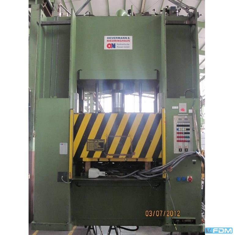 : neu : ca. 4 Monate ab Auftragse : Italien : 38200 €: 729.62 €: 70 to: 500 mm: 700x350 mm: 700x500 mm: 500 mm: 250 mm: 24 mm/s: 5 mm/s: 4 kW: 1500 mm: 1000 mm: 2500 mm: 2100 kg2-fold round guidancetable and ram with T-slots2 hand operationSiemens PLCmanometerusers manual 4-fold round guidings € on Request Light barrier € on Request Siemens control for programming of stroke and press time € on RequestSiemens touchscreen-control, 50 programsstoreable, for programming:• Upstroke and downstroke quota• Break time in the bottom• time of Decompression• setting pressure of work• Pieces counter• prestop in upstroke and downstroke• setting for movement in manual and in automatic• management of alarms and anomalies € on Request Working hour counter € on Request Stroke counter € on Request Deompression valve € on Request Oil cooler with decompreission valve € on ...