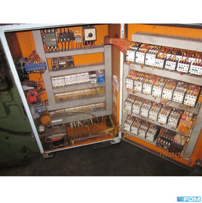 pressure:160 tdistance between columns:1380 mmstroke:300 mmdistance table/ram, max. stroke up, adjustment up:500 mmtable surface area:1250 x 850 mmpressure of drawing cushion in table:80 tstroke of drawing cushion in table:150 mmdie cushion area:450 x 450 mmtable height over floor:900 mmside window:250 x 400 mmram surface:1350 x 850 mmspeed down:400 mm/sspeed up:350 mm/sworking speed:50 mm/soil volume:1850 lpower requirement:58,0 + 11,0 kWweight:24,1 tdimensions (WxDxH):2,85 x 2,15 x 4,6 mGerman Safety: permitted for manual loading:CE-sign die cushion / ejector in table:hydraulic depth stop:motoric adjustable