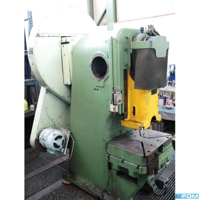 pressure:100 tthroat:375 mmstroke:20 - 125 mmno. of strokes:30 - 80 /mindistance table/ram, max. stroke up, adjustment up:515 mmtable surface area:900 x 635 mmhole in the table:280 mmtable height over floor:800 mmpassage to the back:570 mmram surface:700 x 450 mmram adjustment:80 mmpower requirement:15,0 kWweight:8,0 tdimensions (WxDxH):1,5 x 2,4 x 3,5 mGerman Safety: permitted for manual loading:UVV 11.062 - VBG 7n5.1 clutch:pneumatic overload protection in ram:hydraulic ram adjustment:motoric ram counterbalance:pneumatic