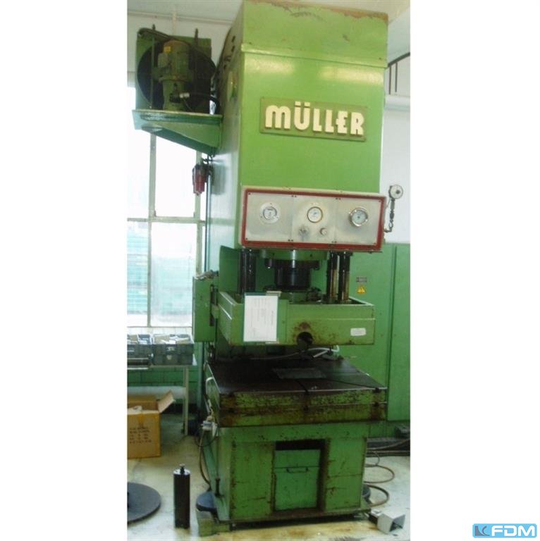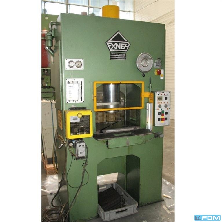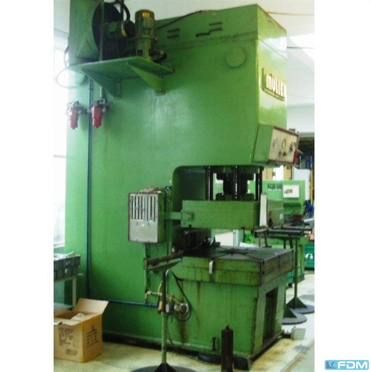 pressure:25 tthroat:355 mmstroke:500 mmdistance table/ram, max. stroke up, adjustment up:800 mmtable surface area:500 x 500 mmhole in the table:180 mmtable height over floor:700 mmram surface:250 x 250 mmpower requirement:7,5 kWweight:2,1 tdimensions (WxDxH):1,45 x 0,9 x 2,55 m