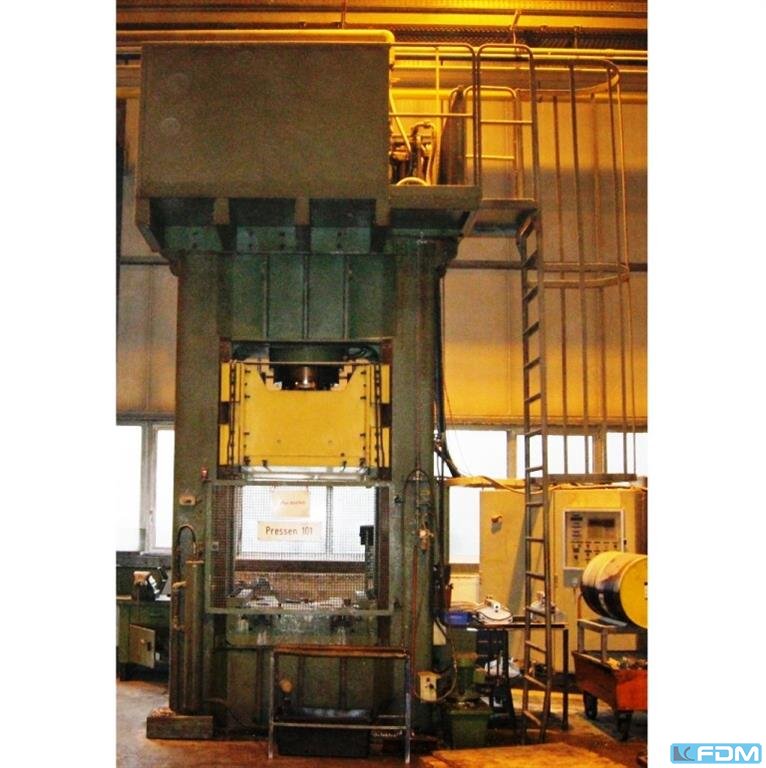 pressure:400 tstroke:280 mmno. of strokes:56 Hub/mindistance table/ram, max. stroke up, adjustment up:680 mmtable surface area:560 x 750 mmallowed max. force:600 tblow die to die:800 tspindle diameter:200 mmram surface:560 x 560 mmheight over floor:4,1 mpower requirement:37,0 kWweight:12,0 tdimensions (WxDxH):2,2 x 2,0 x 4,25 m