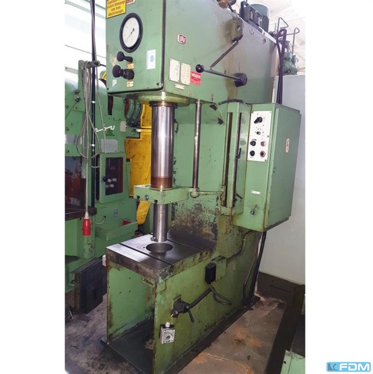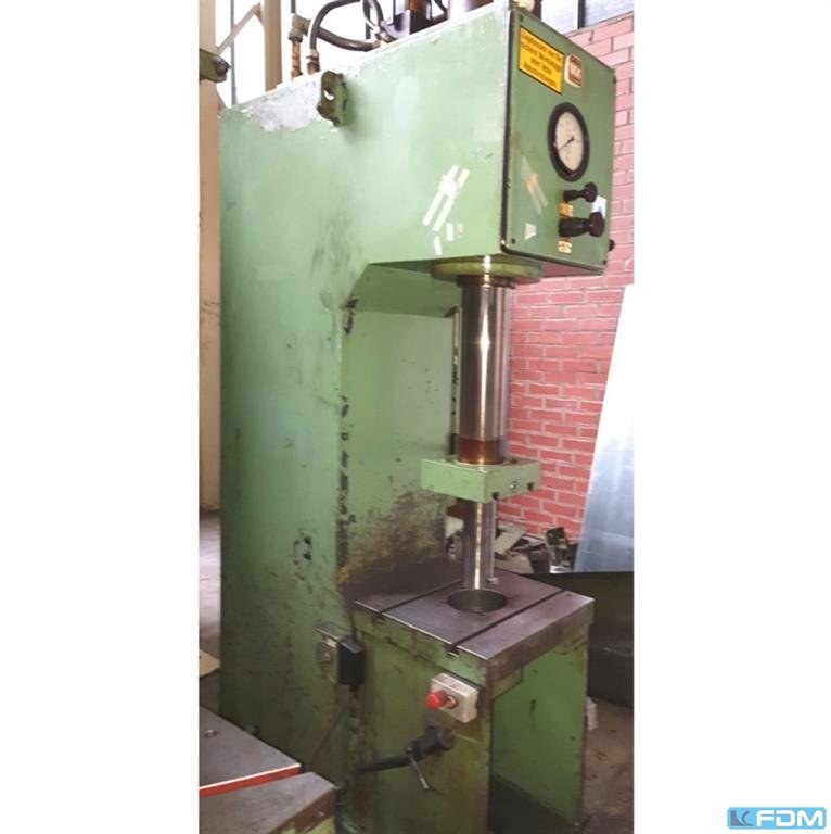 pressure:25 tthroat:400 mmstroke:1000 mmdistance table/ram, max. stroke up, adjustment up:1100 mmtable surface area:620 x 620 mmHole in the table:80 mmtable height over floor:650 mmram surface:110 mmspeed down:300 mm/sspeed up:500 mm/sworking speed:14 - 85 mm/soil volume:400 lpower requirement:6,0 kWweight:3,8 tdimensions (WxDxH):1,5 x 2,1 x 3,9 mGerman Safety: permitted for manual loading:UVV 11.064 - VBG 7n5.2