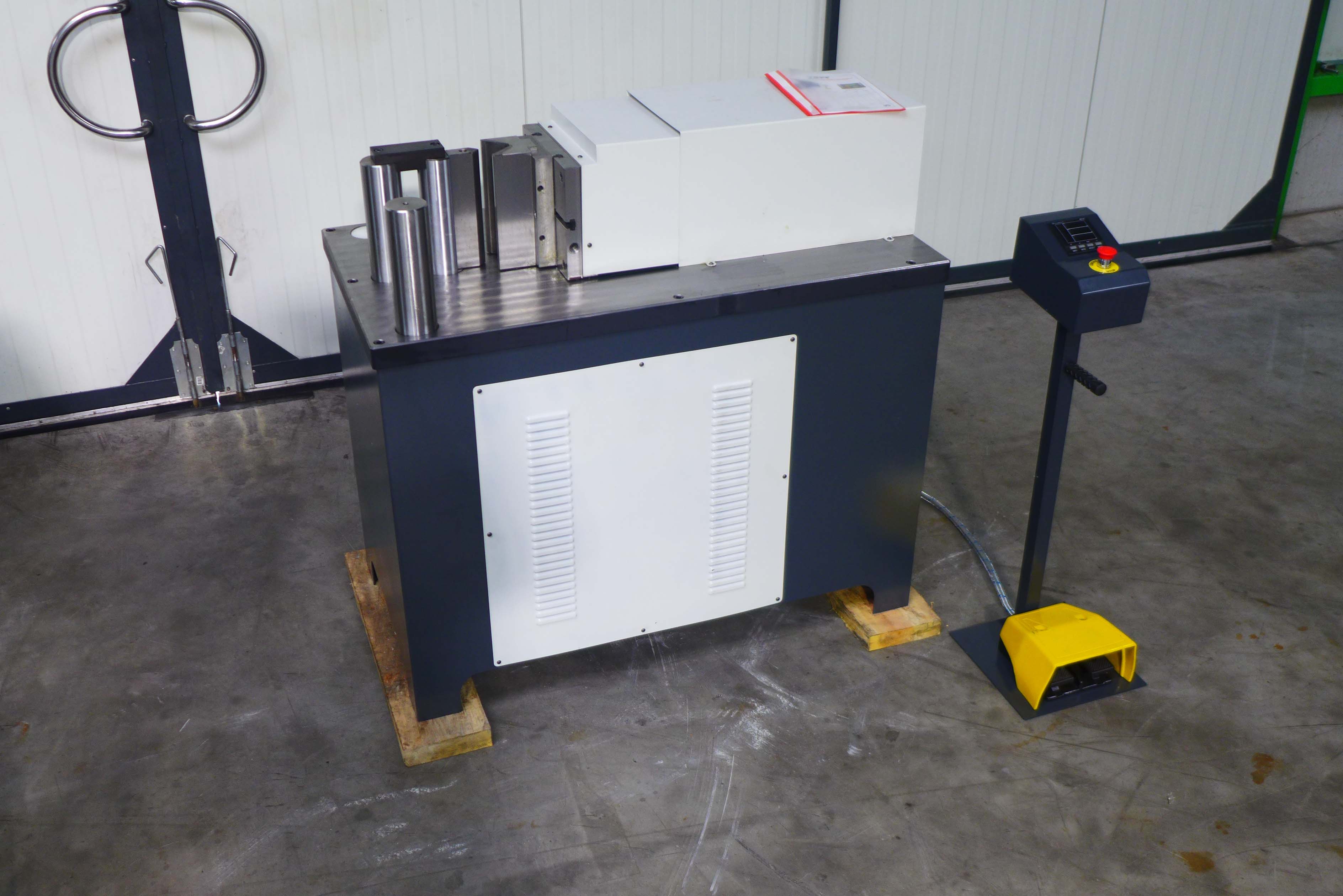 - Zone de serrage 215 - 620 mm- Zone de rotation 170 - 620 mm- Course 290 mm- Épaisseurs max. de la paroi 1 cycle 40 mm- Vitesse de rotation 25, 38, 50 min- Convoyeur à rouleaux TRB 7000 mm avec type V- Construction en hauteur réglable
