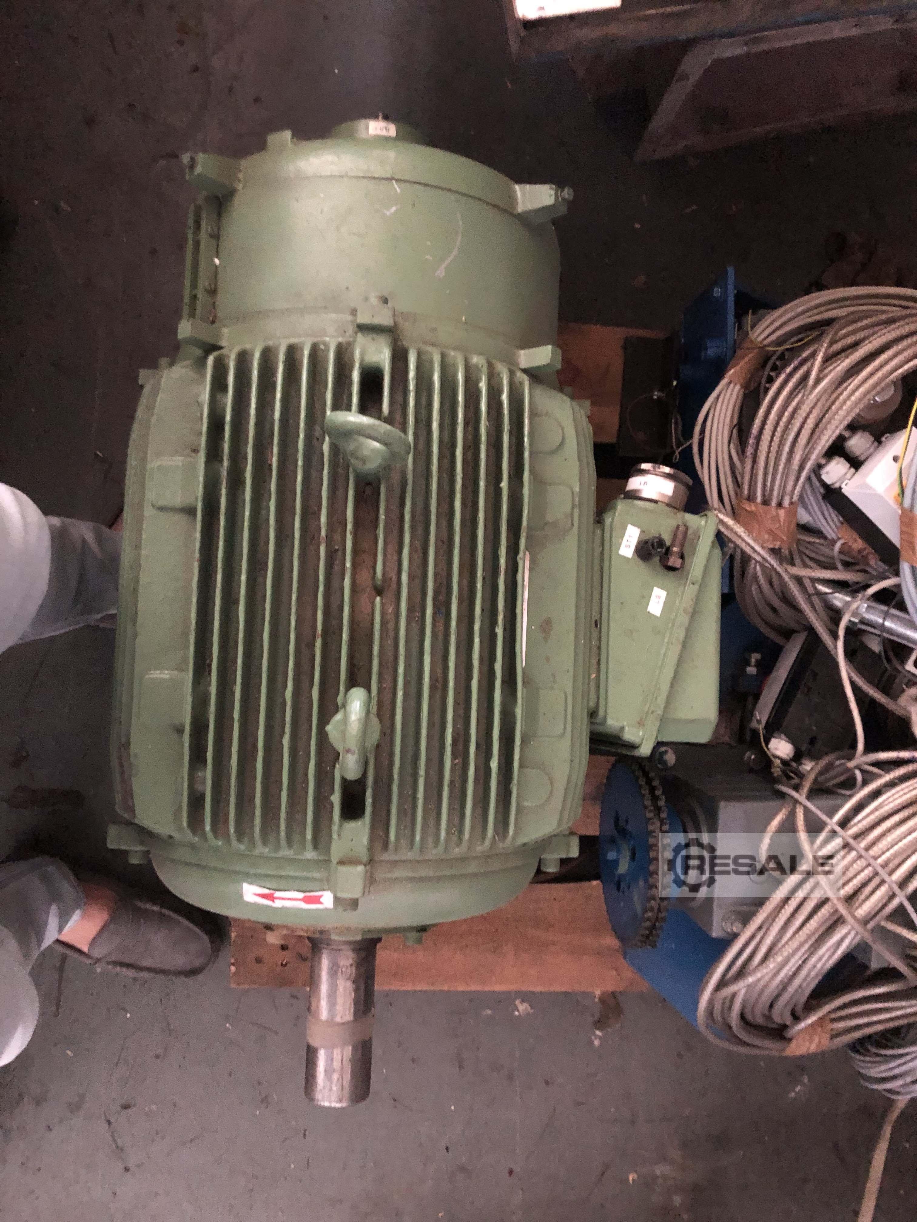 geared motor, electric motor -Speed: 320 rpm -Power: 1.1 kW -Design: B3 -Shaft diameter: Ø 25 mm -Protection class: IP 44 -External fan -Weight: 30 kg