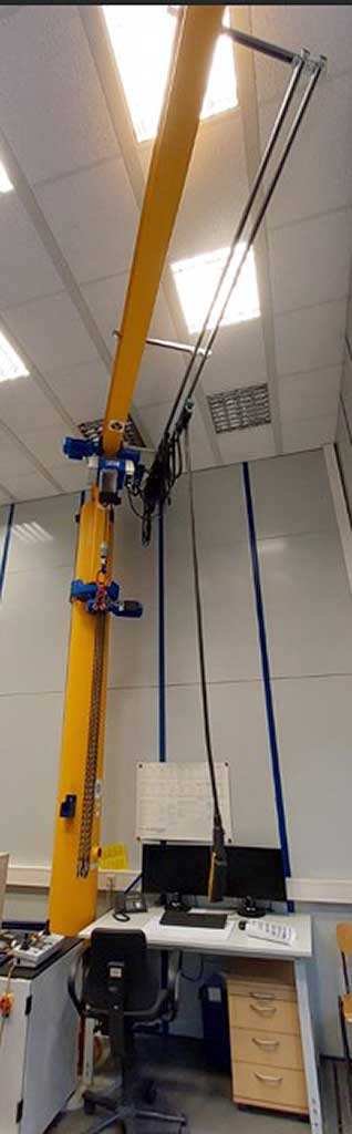 1 grue à colonne testée en atelier Charge utile d’environ 1 000 kg Décharge approximative de 5 000 mm Hauteur approximative de 4 000 mm Boîte inférieure de perche approximativement 3,170 mm Faire ABUS Inspection de l’atelier 2015 Avec le treuil électrique, le fonctionnement du couloir et un nouveau revêtement Vitesses de travail : Mécanisme de levage approx.. 1,5 / 6,0 m/min Suspension de chat à la main Mécanisme de rotation à la main