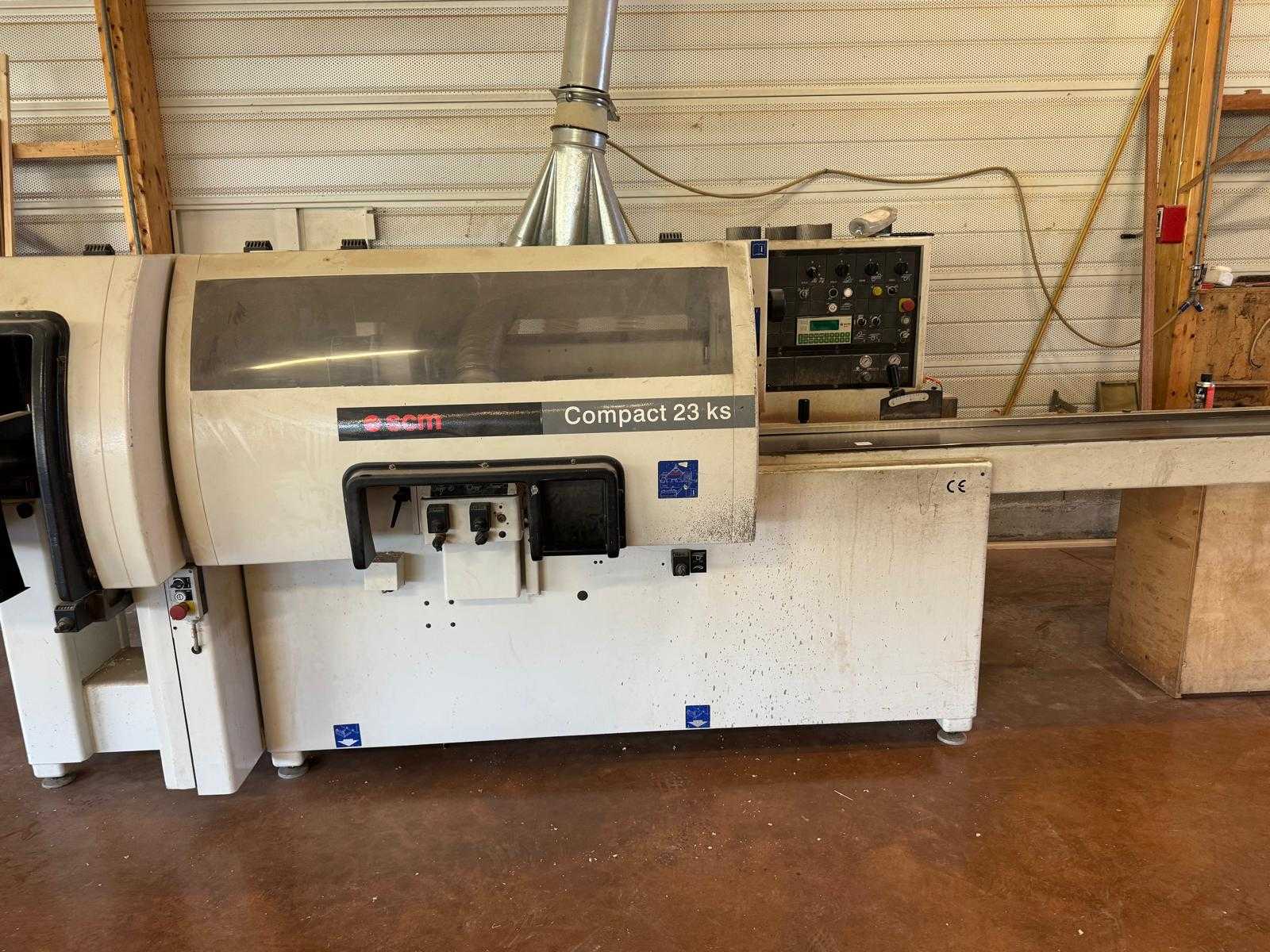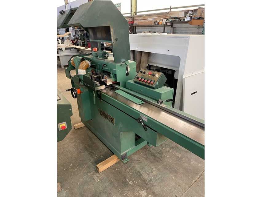 Capacité : 230 × 120 mm Configuration : 5 arbres Dégauchisseuse : 5 kW Toupie droite : 7,5 kW Toupie gauche : 7,5 kW Raboteur : 7,5 kW Arbre universel : 5,5 kW Entraînement : 1,1 kW Vitesses par variateur Montée, descente et arbre de rabotage numériques Toupie gauche numérique Compteurs numériques mécaniques SIKO sur chaque mouvement d’axe + affichage digital au tableau Porte-outils hélicoïdaux à plaquettes carbure Tables : Table d’entrée 2 500 mm Aspiration : 4 × Ø 120 mm 1 × Ø 150 mm Dimensions machine : 3 900 × 1 450 × 1 540 mm Conformité : Norme CE Données particulières : Insert de graissage de table intégré Rouleau d’entraînement avant dégauchisseuse avec escamotage manuel Rouleau polyuréthane motorisé en sortie Sécurité : Protecteur : oui Auction-ID: A1-45443-72