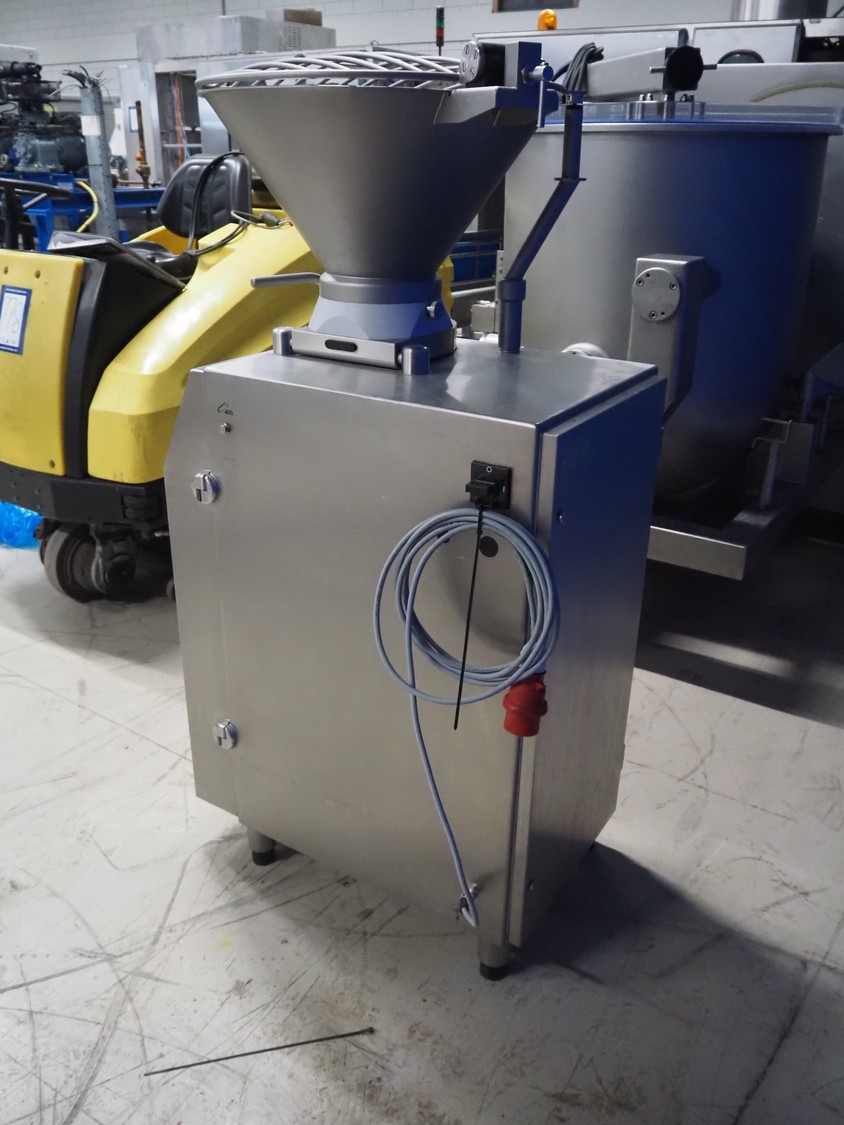 Nous vendons ici un poussoir sous vide du fabricant Frey, type E120 en très bon état d’usage et fonctionnel. La machine fonctionne sur 400 volts, trémie de 120 litres, commande LCD, connexion de la tondeuse, pour le remplissage et le portionnement, testée en atelier, immédiatement prête à l’emploi, dimensions L/P/H 85/60/170 cm, autres sur demande.