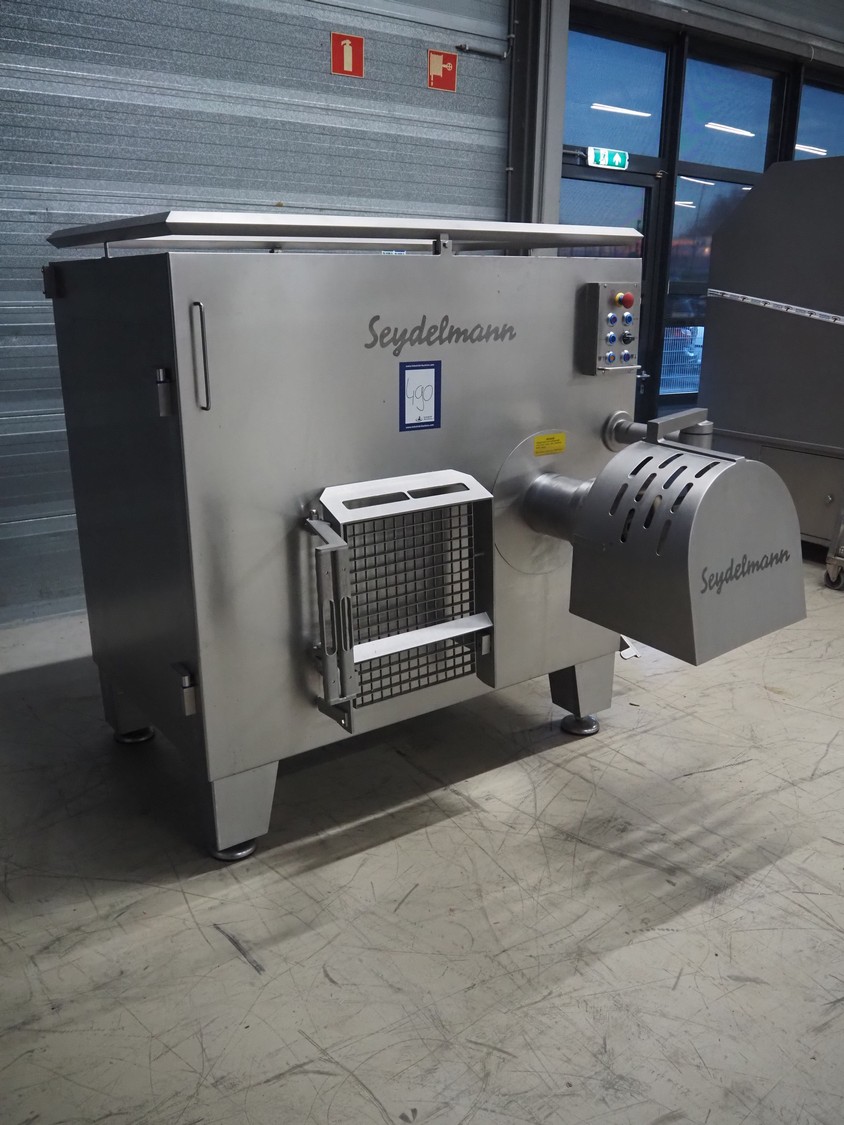 Seydelmann AE 130 Hachoir à viande / Hachoir automatique Année de construction 2007 Diamètre du disque perforé de 130 mm Vis sans fin de travail à 2 vitesses Vis d’alimentation conique et extra-large à 2 vitesses Trémie de 130 litres avec grille de protection verrouillée Set de découpe de 5 pièces au choix Kit séparateur disponible en option