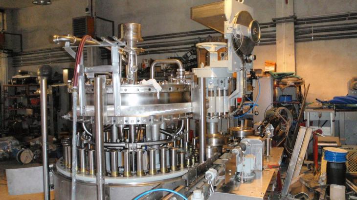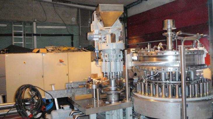 Bloc de remplissage, Fabr. Nagema, Type: Varifill 40/10K/10PP Capacité: 12 000 Fl / h, fonctionne sur des bouteilles à col long de 0,33 lt et 0,5 lt NRW 40 vannes de remplissage Liège couronne à 10 chiffres Bouchon à vis à 10 chiffres (pour les fermetures MCA 28), double pré-évacuation, Direction de course: gauche -> droite YOC 1994 L : 4 000 mm, L : 2 700 mm, H : 2 800 mm Prix sur demande