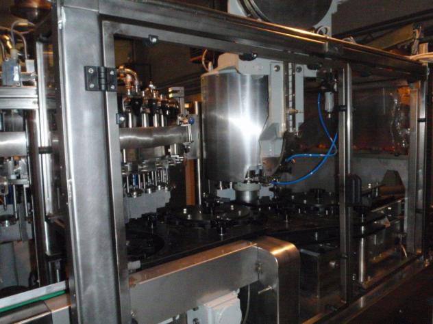 Filet de verre pour bière et boissons gazeuses / AfG BKM Varifill avec 32 soupapes / 8 tête bouchon couronne / 8 tête vis scelleur alu Construction: 2004 Siemens S7 Remplissage en verre pour bière et boissons gazeuses BKM Varifill, 32 soupapes, 8 bouchons de couronne de tête, 8 têtes en aluminium de bouchon de vis Fabriqué: 2004 Siemens S7